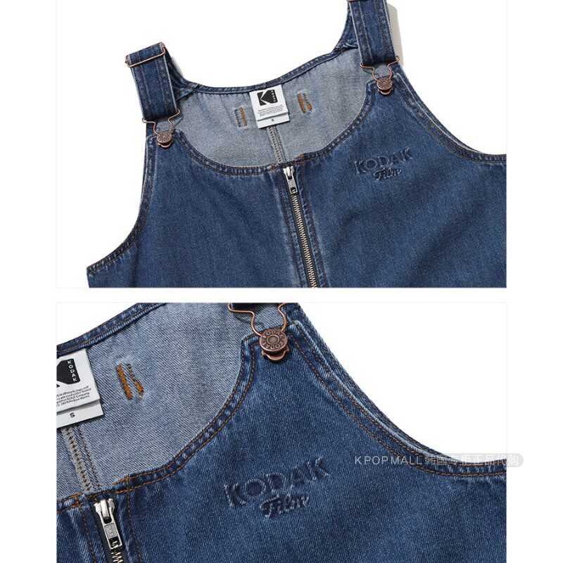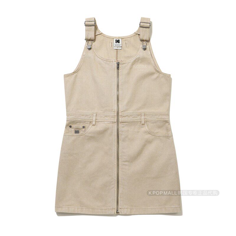韩国代购 KODAK柯达学院风牛仔连衣裙女拉链吊带减龄短裙丹宁风