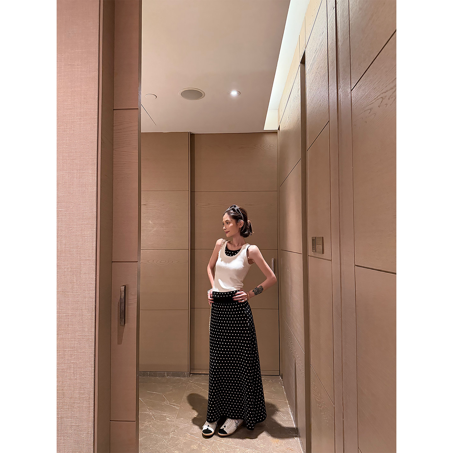 夏季 NEW 00吴童童 波点拼接针织背心两件套 4.7