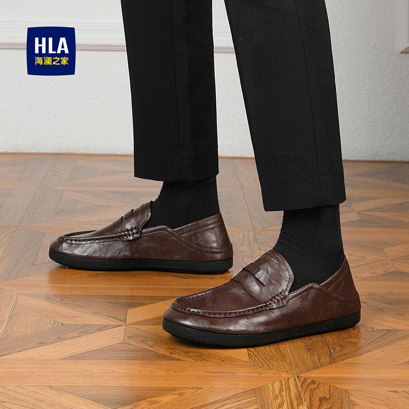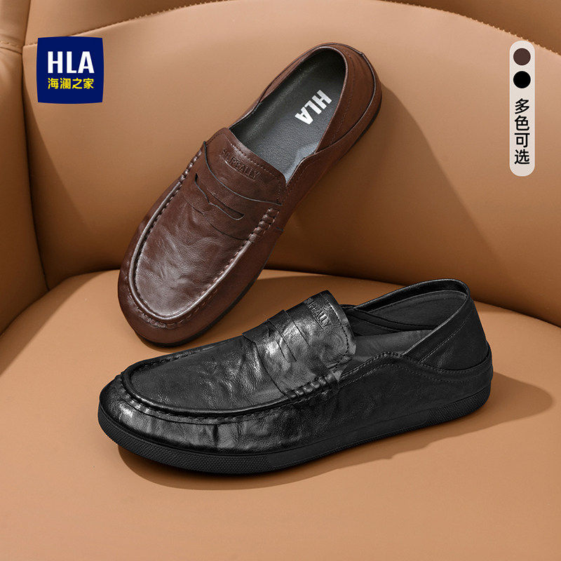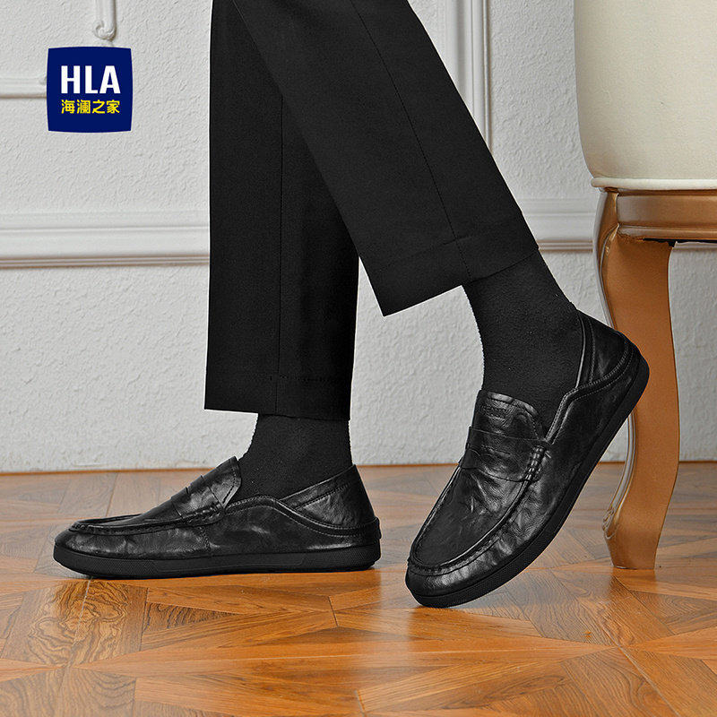 海澜之家男鞋 乐福鞋 新款 休闲踩拖一体软底舒适套脚皮鞋 男 春季 HLA