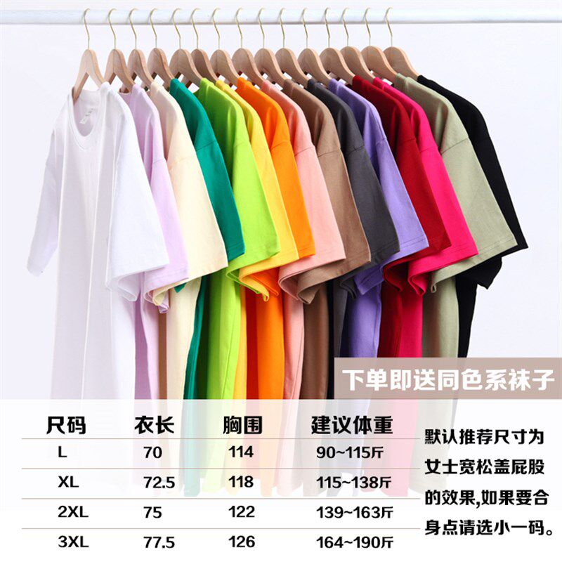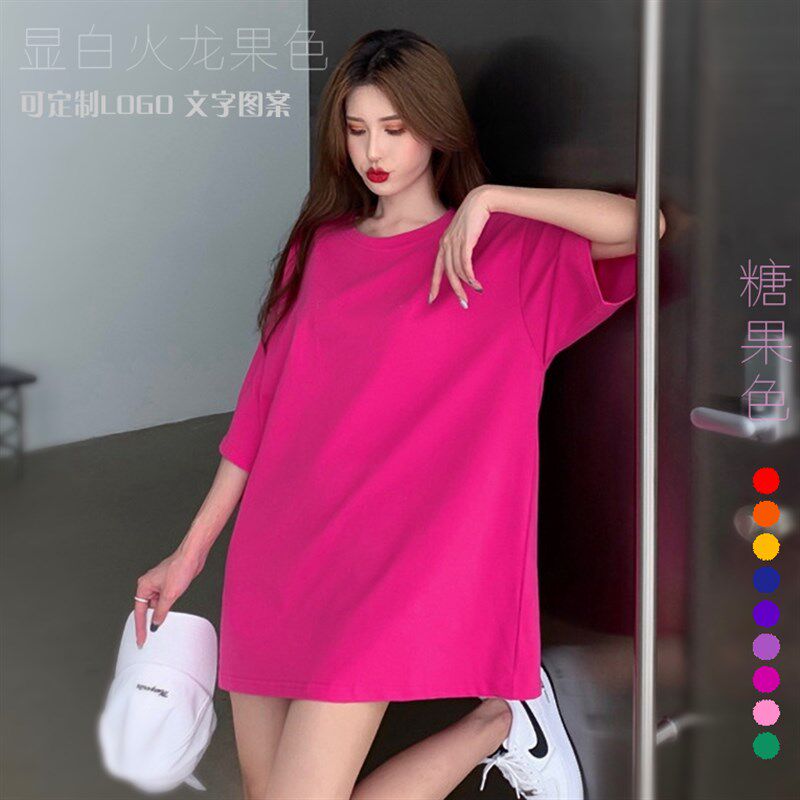火龙果色T恤女夏中长宽松多巴w胺糖果色闺蜜装 玫红T定制印字图LOG