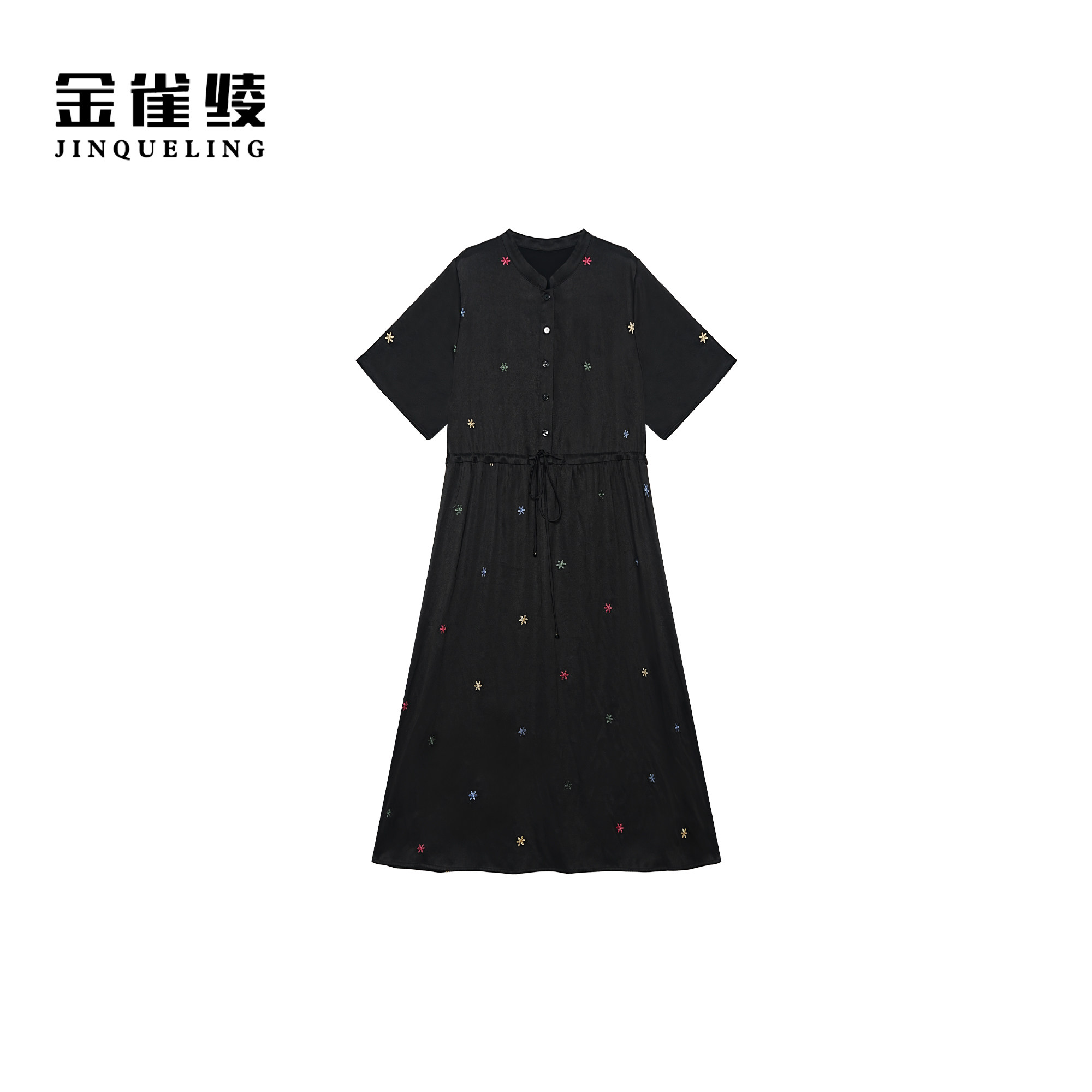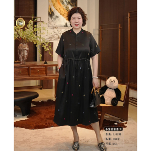 金雀绫 香云纱弹力缎加宽加大刺绣连衣裙SZBW110 韶华依旧