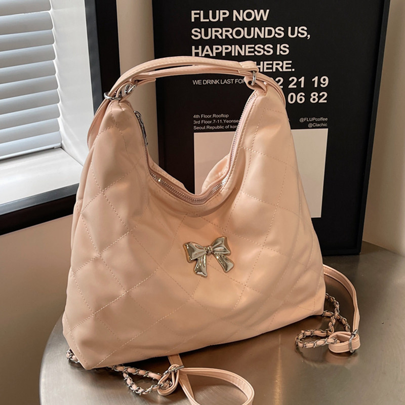 托特包女2026新款 百搭单肩包蝴蝶结小众背包 大容量通勤双肩包时尚