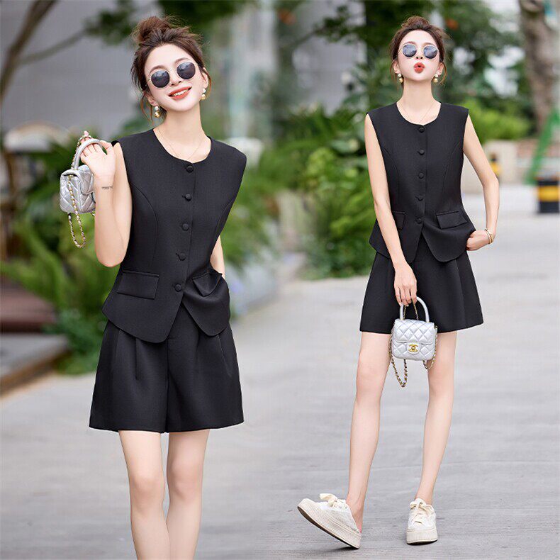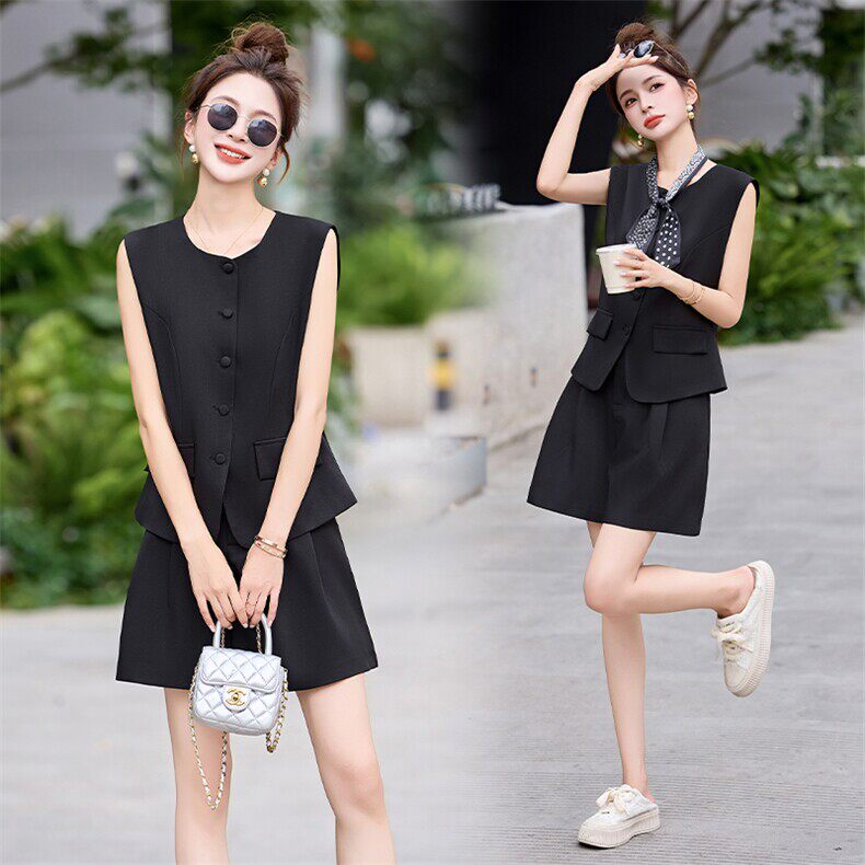 高级感显瘦短裤 女夏季 两件套小个子 马甲套装 极简轻熟风西装