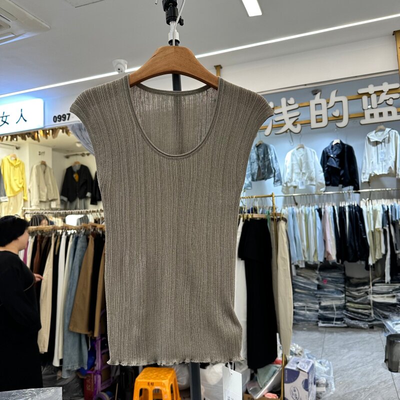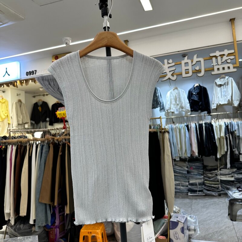女2026年春夏季 U领极简风飞机袖 新款 时尚 套头上衣 韩版 冰丝针织衫