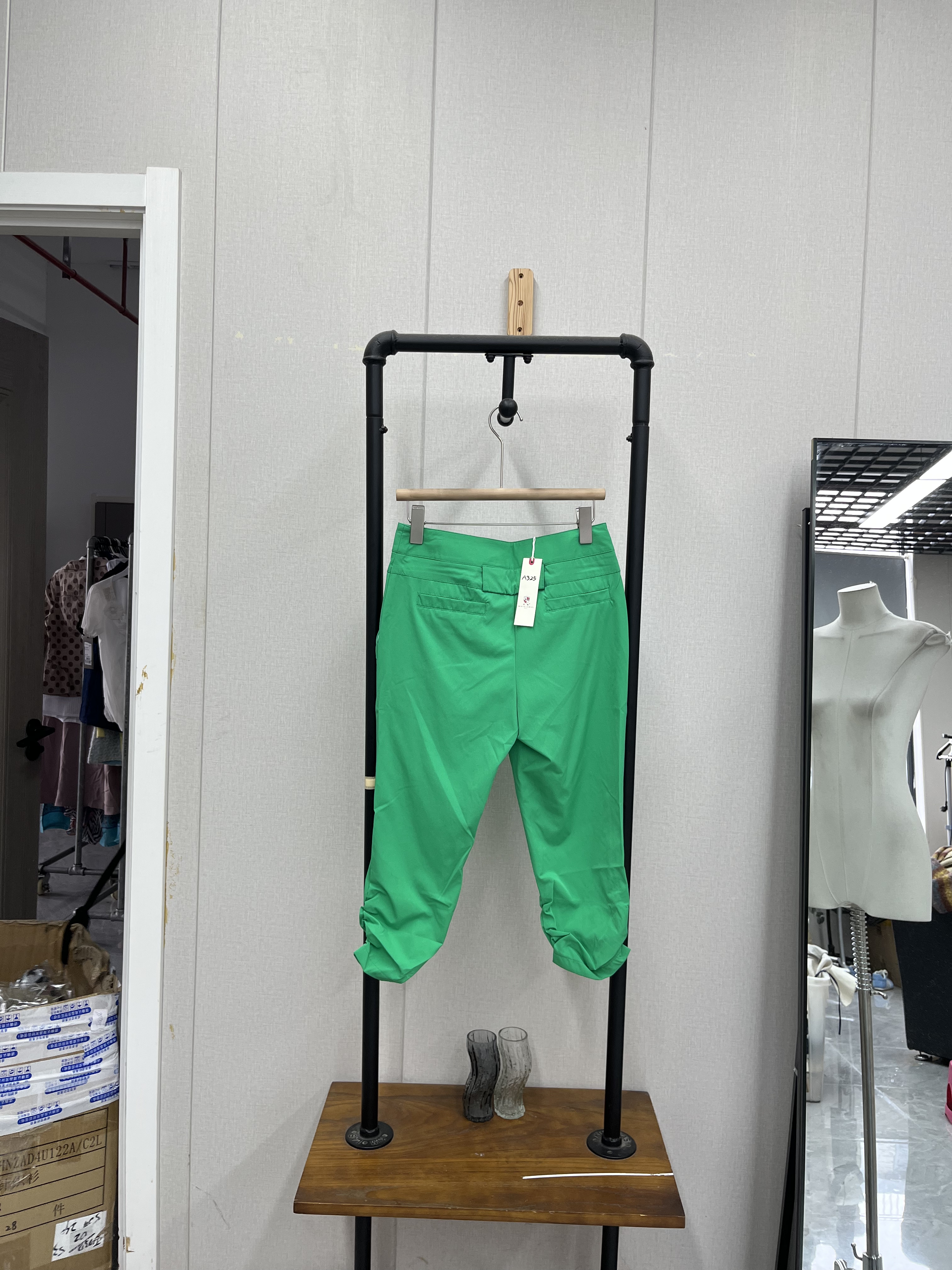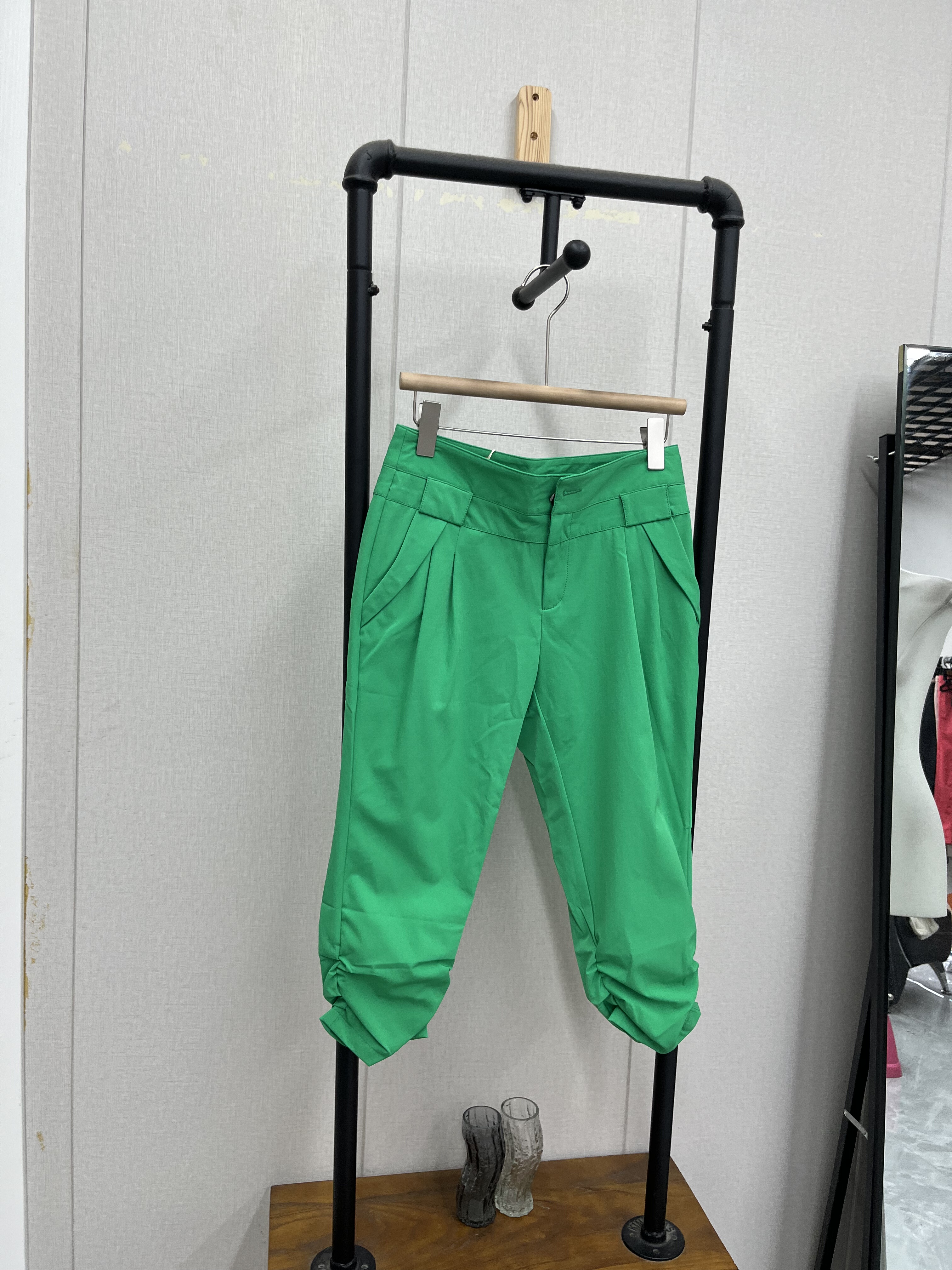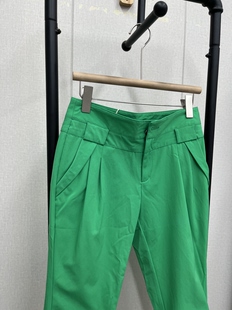 通勤休闲 脚松紧褶皱设计百搭夏季 绿色高腰休闲裤 裤