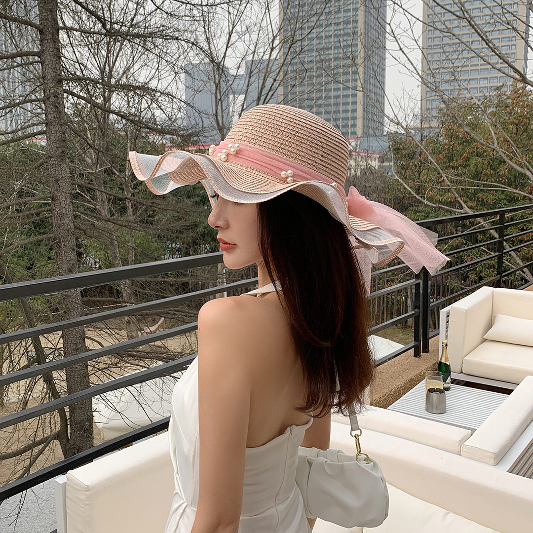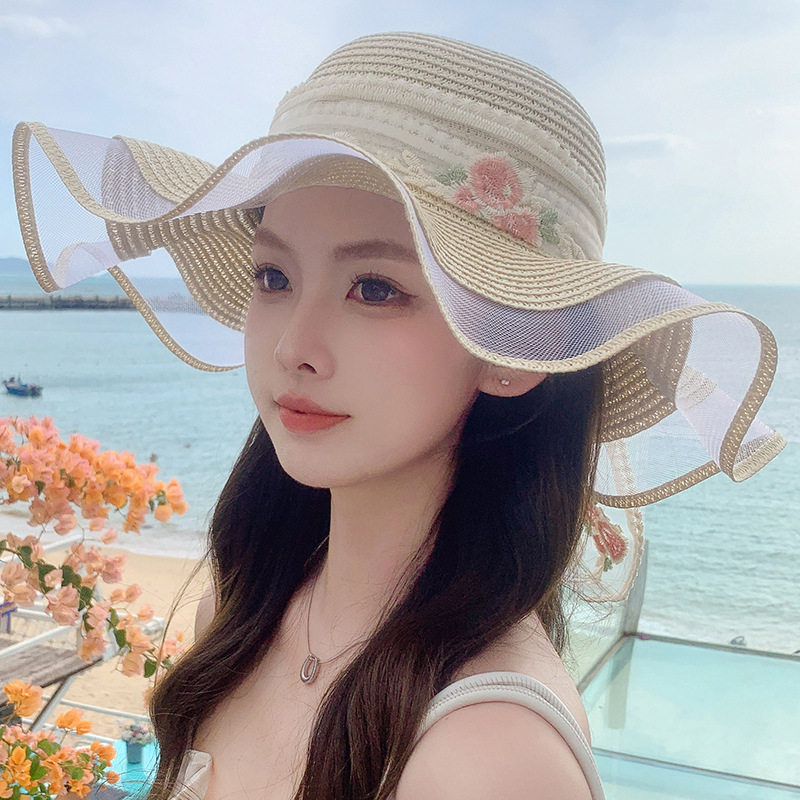 轻奢大帽檐草编帽子防晒帽女夏季 户外出游海边沙滩遮阳太阳帽