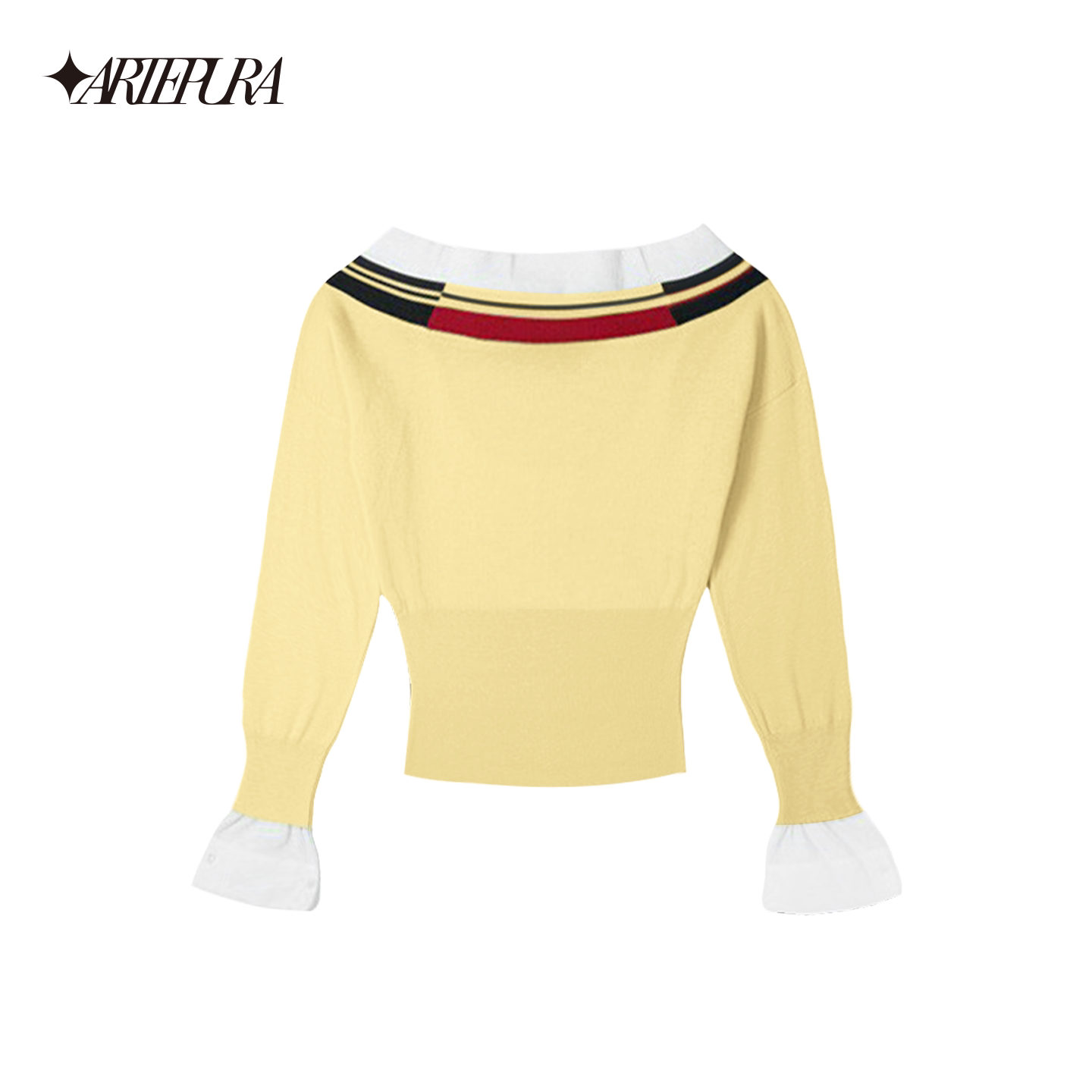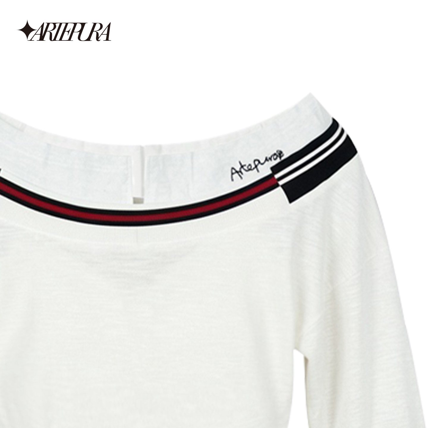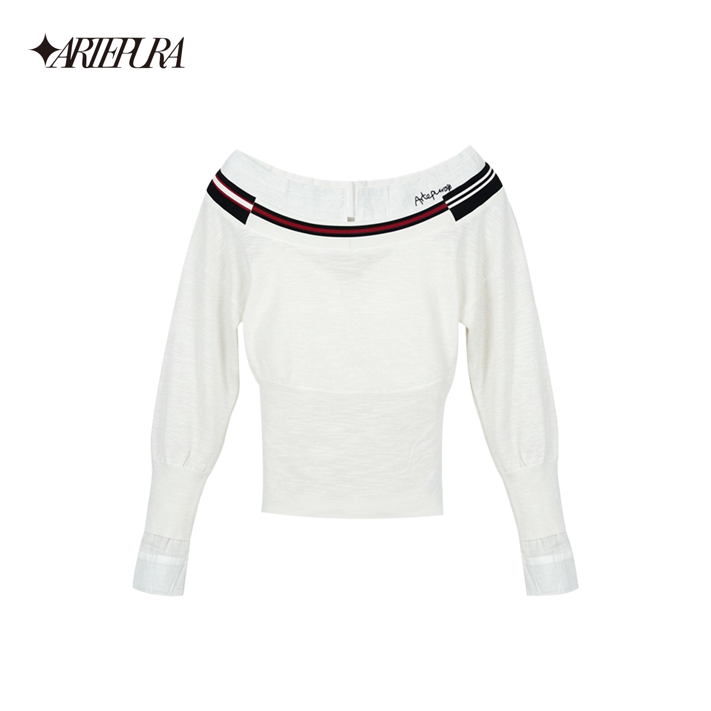 女收腰显瘦长袖 ARTE 撞色绣花一字肩针织衫 新款 上衣 PURA2026夏季