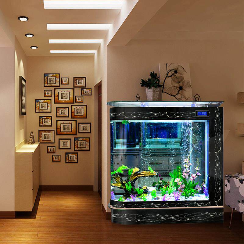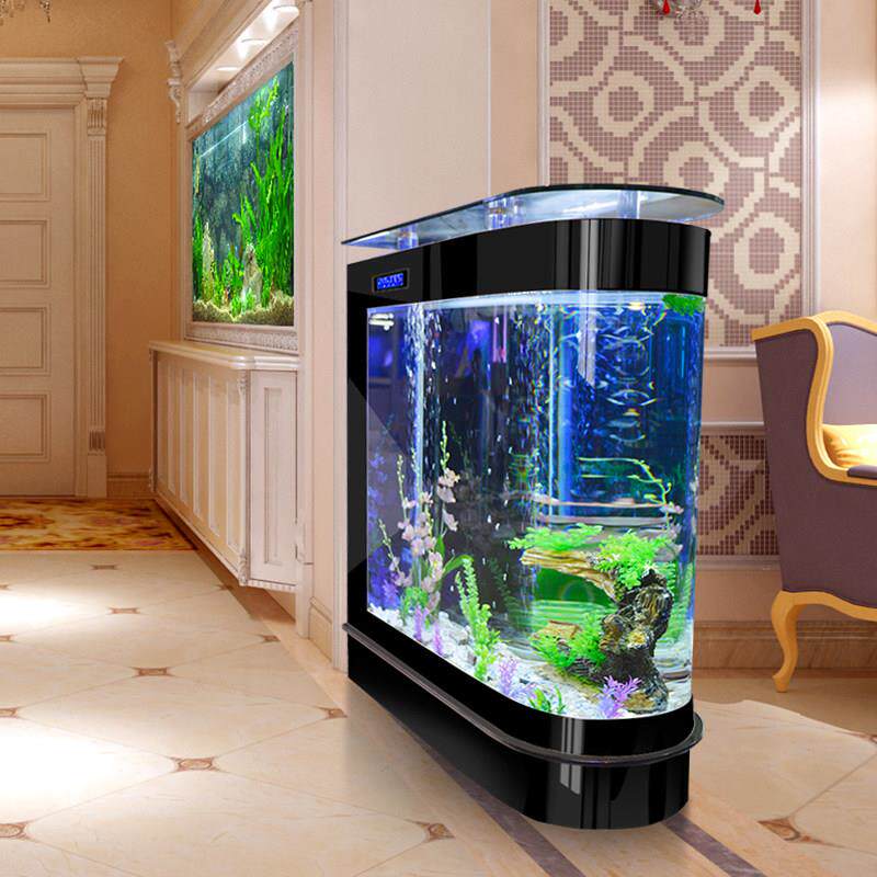 子弹头鱼缸金水族箱大型中型1.2 1.5米玻璃生态客厅家用落地屏风
