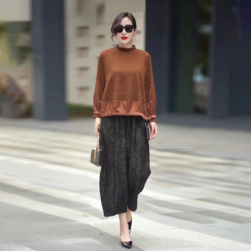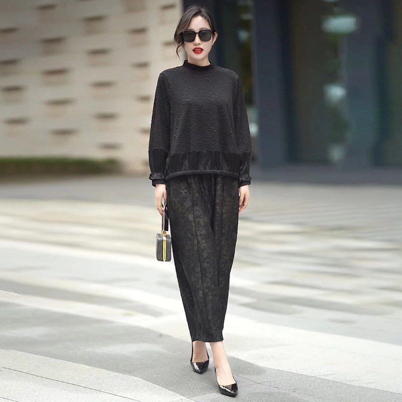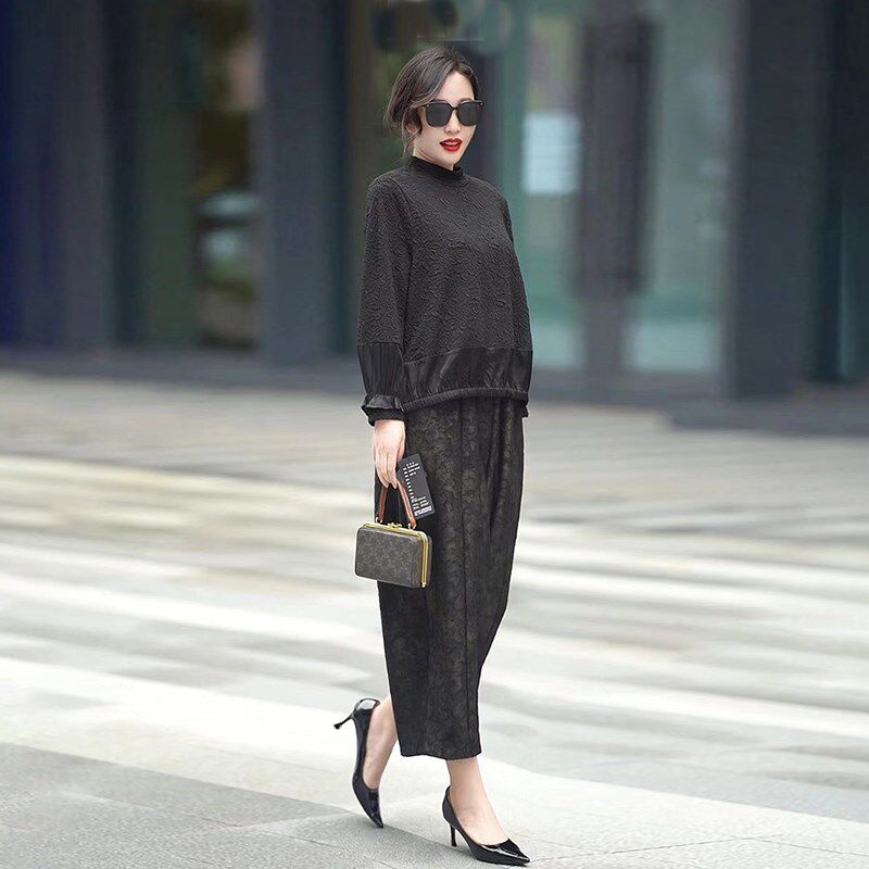2024新款 胖MM人丝提花t恤上衣套装 大码 半高领打底衫 女装 女秋冬季