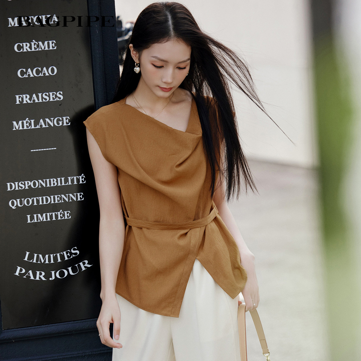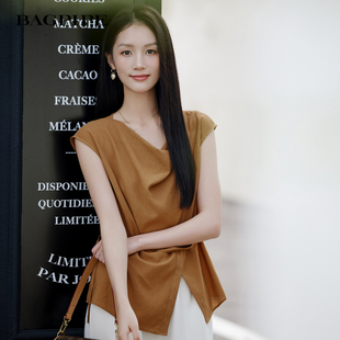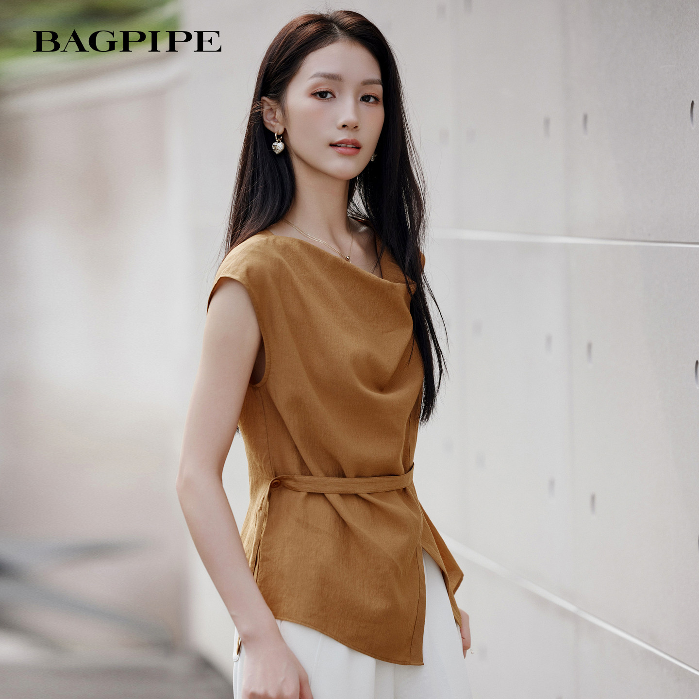 荡领衫 无袖 系带收腰不规则剪裁温柔慵懒风上衣 新款 风笛2026夏季