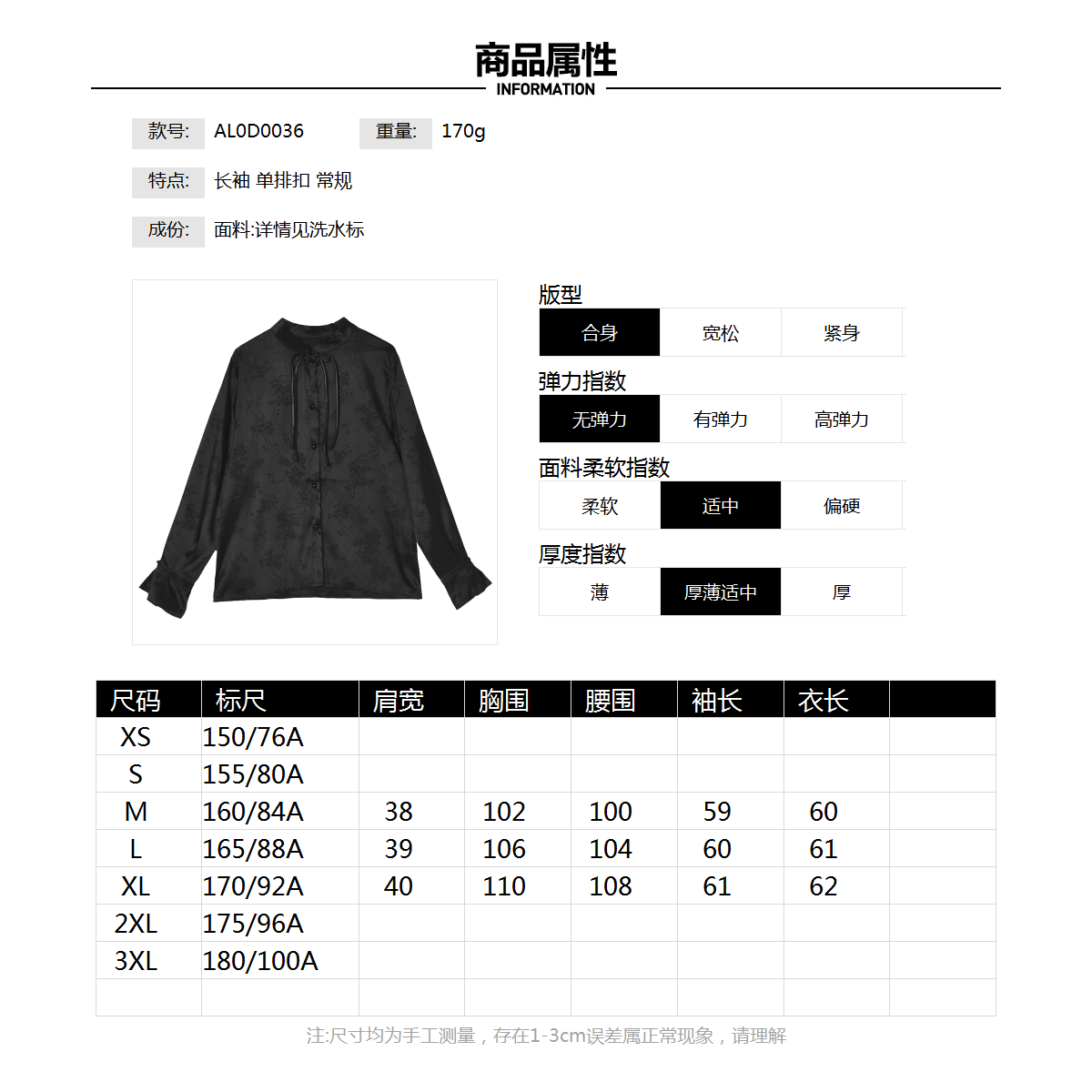 AL0D0036新中式 女3.16春 暗纹提花上衣单排扣衬衫
