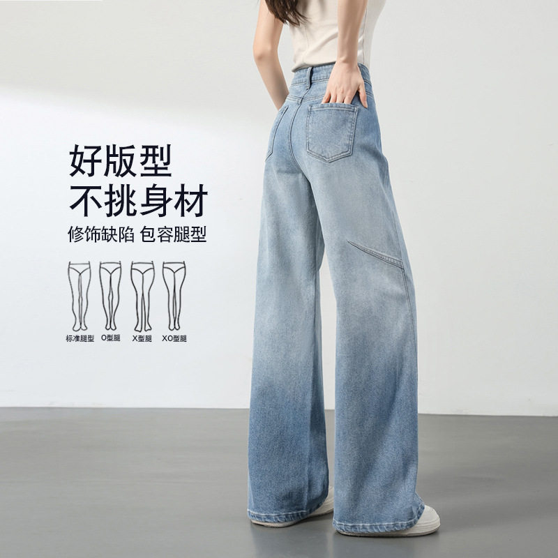 专柜高腰遮肉显瘦阔腿牛仔裤 女2026春夏垂顺不易皱收腹藏赘肉长裤