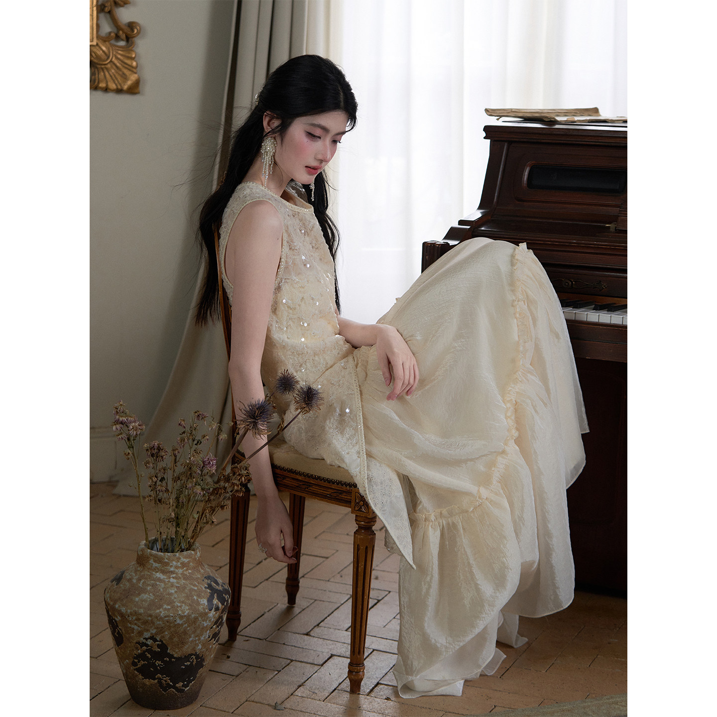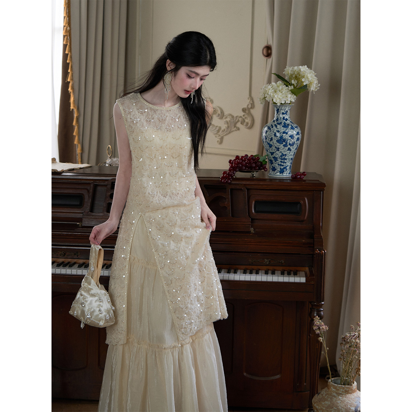 月光恋人 法式 夏季 MOPASSANT 半身裙套装 27上新 蕾丝刺绣罩衫