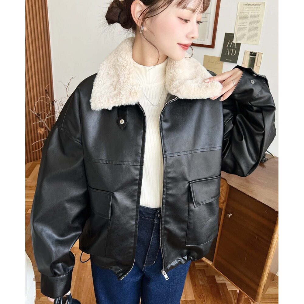 可拆卸毛领2WAY设计 仿皮短外套 mt01077 女装 日本直邮moment