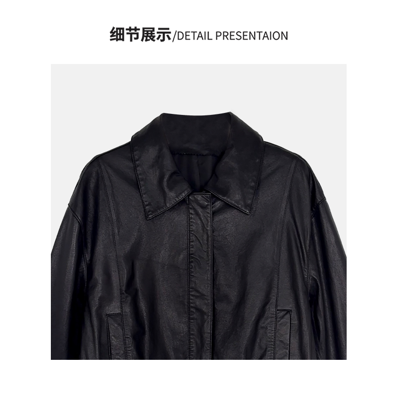 P950 100羊皮抽绳收腰真皮外套WT2603 3372 都市皮衣 T井姐妹