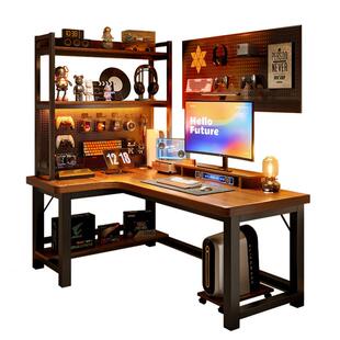 实木转角电脑桌台式 卧室家用电竞桌子书桌书架一体拐角办公桌L型