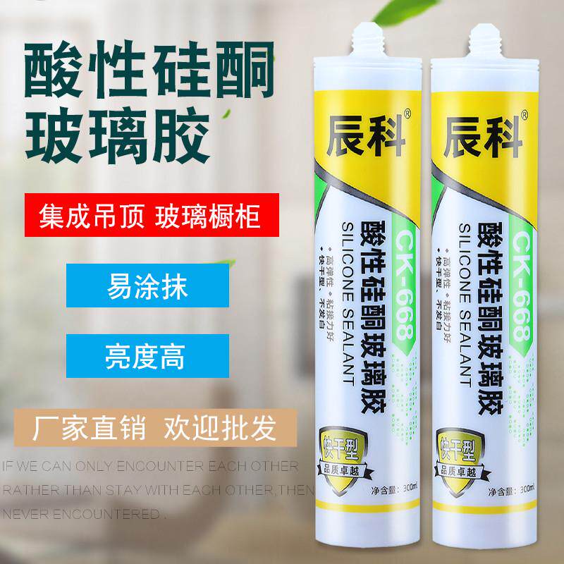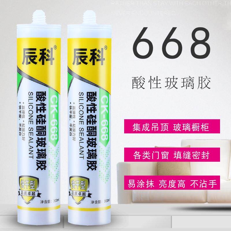 辰科668酸性玻璃胶门窗密封防水硅酮胶集成吊顶快干瓷白透明整箱
