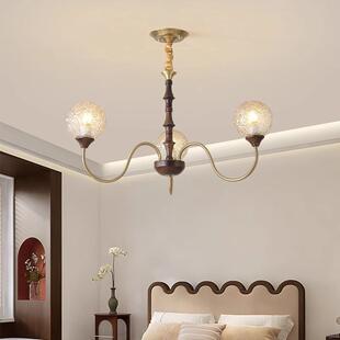 法式 复古风卧室灯胡桃木色套餐灯 中古客厅灯吊灯餐厅灯具魔豆美式