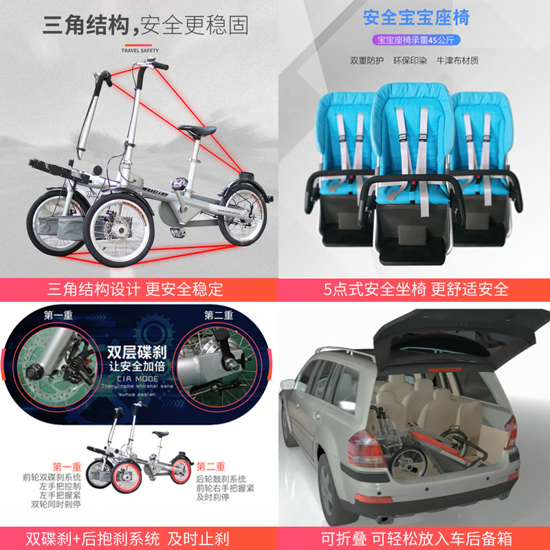 新款 第四代雷亚母婴亲子车助力自行车儿童带娃车骑行代步接送遛娃