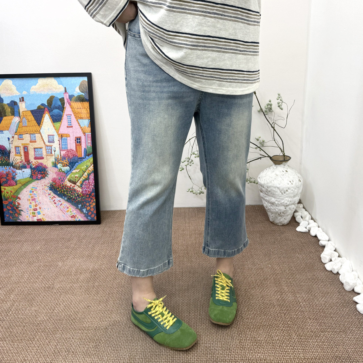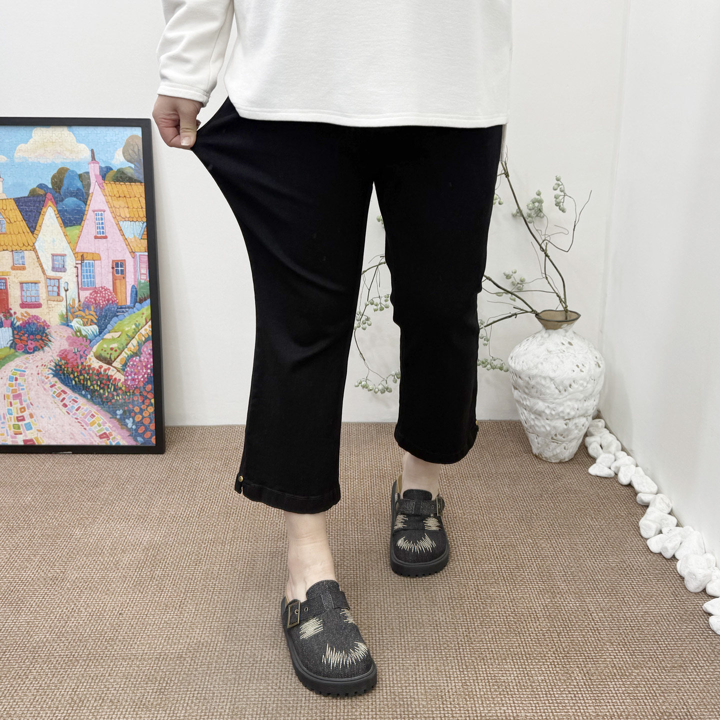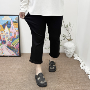 新品 胖mm百搭显瘦九分裤 大码 弹力松紧腰微喇牛仔裤 子 女裤 2026春装