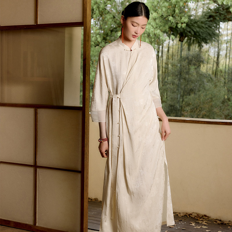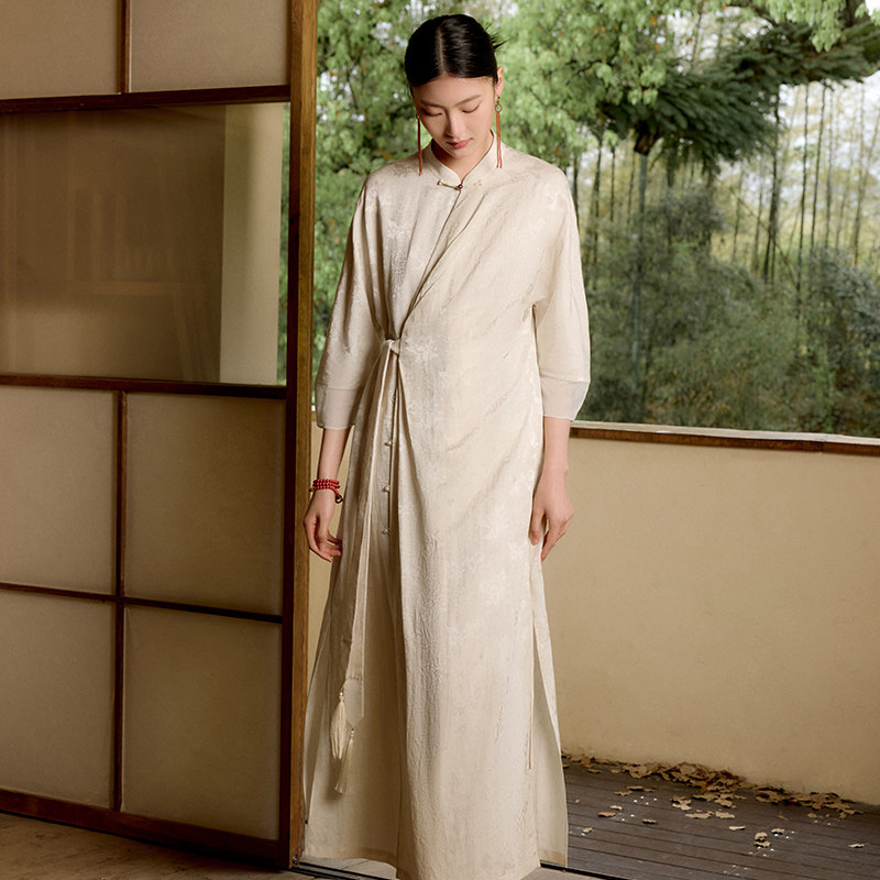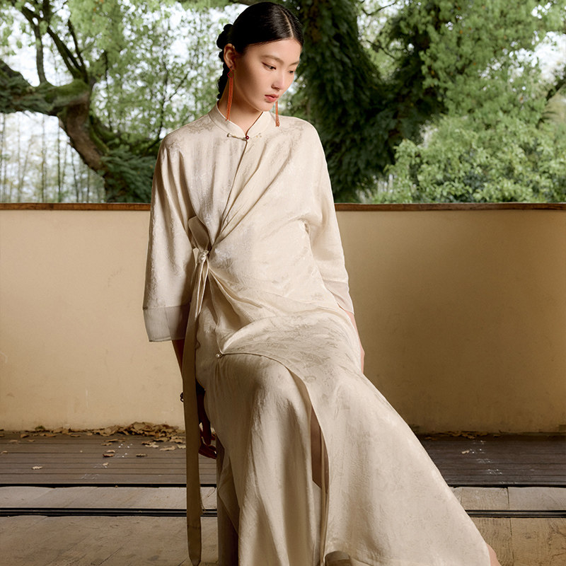 新款 夏季 生姜新中式 改良斜襟系带简约连衣裙11421204C 闪购价
