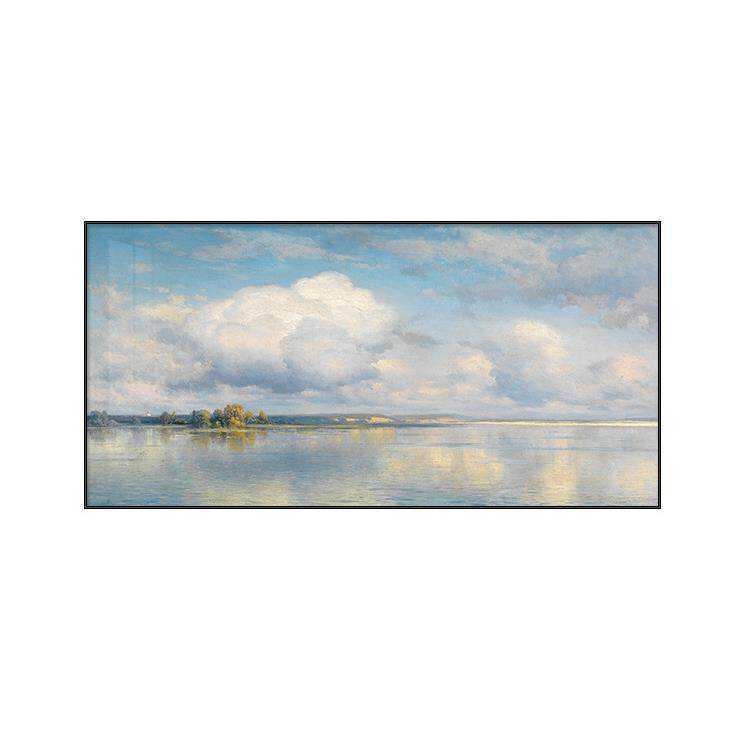 海边舫船沙发背景墙油画横版 饰画树林风景卧室挂画床头壁画 客厅装