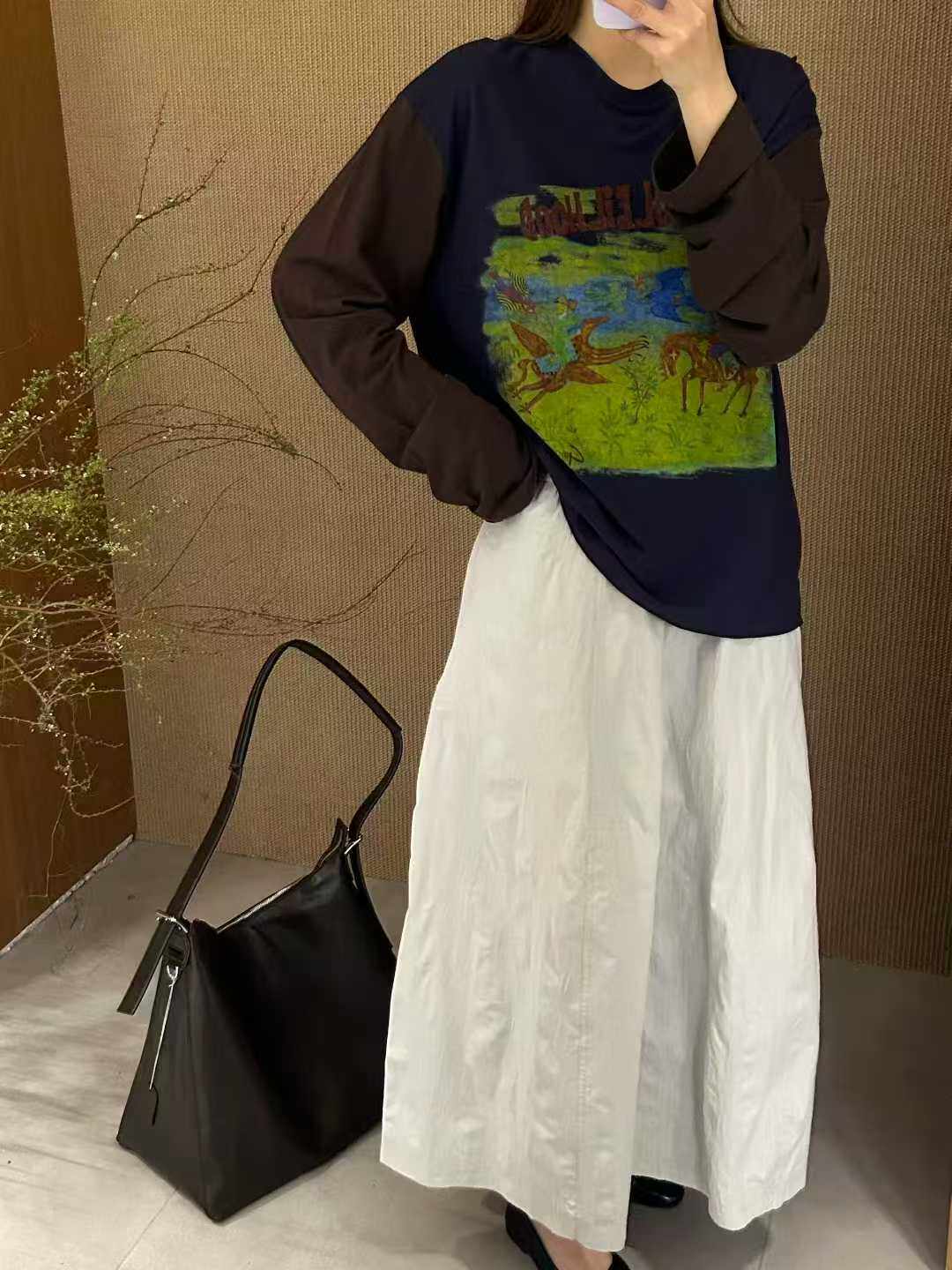 圆领印花图案长袖 撞色T恤韩系早春新款 T恤 一款 84143非常有强调