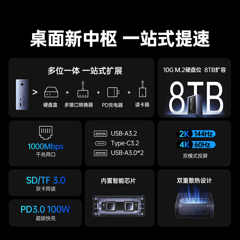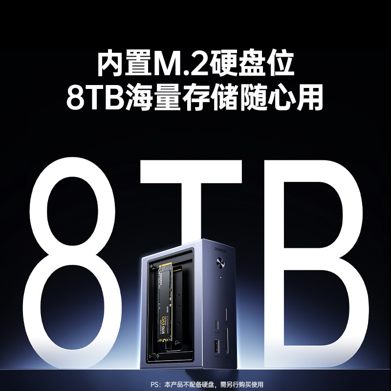 绿联typec转M.2硬盘盒拓展坞桌面扩展8TB内存转HDMI投屏4K转换USB3.2集线器10Gbps传输适用MacBook笔记本电脑