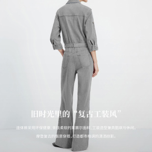 2026春夏灰色连身裤 女阔腿牛仔裤 子 连衣裤 Navigare小帆船复古工装
