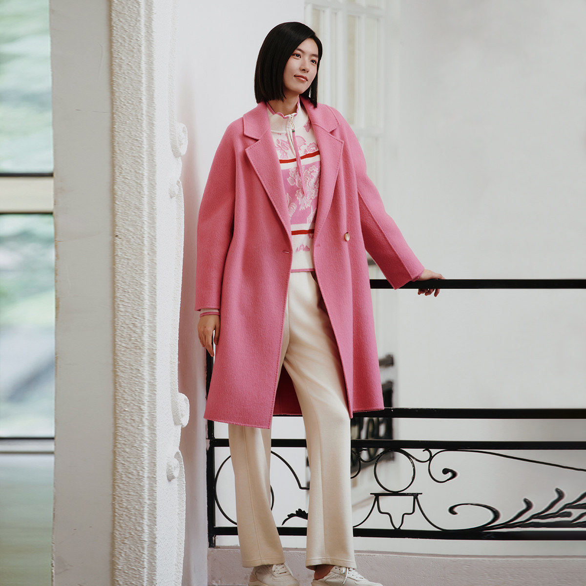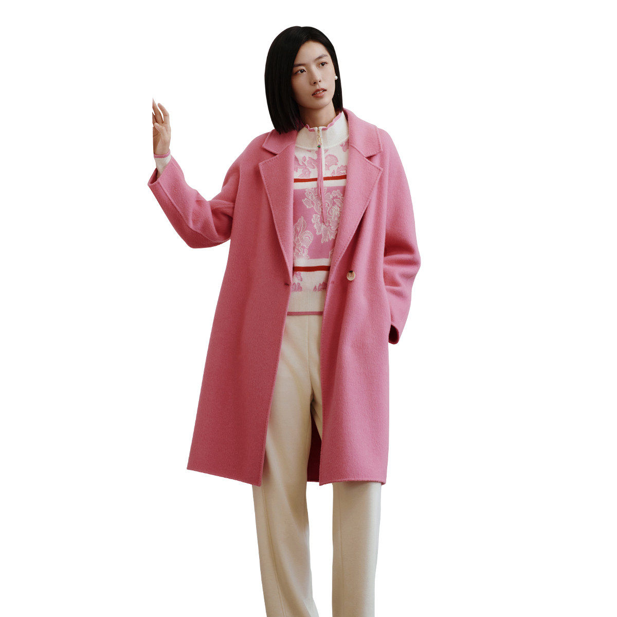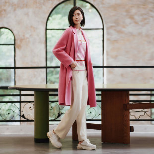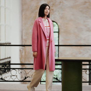 8E42D3543 大衣 歌蒂诗冬专柜新款 高级气质粉色减龄羊毛中长款