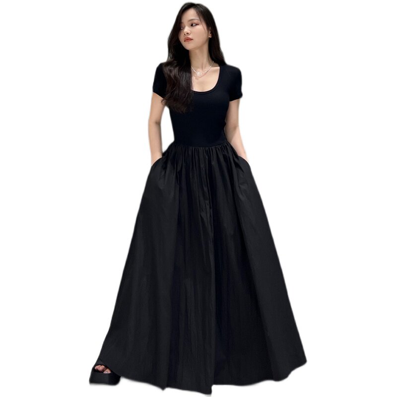 夏长裙 气2拖地裙季 速发黑色连衣裙质02新款 旅游穿搭法式