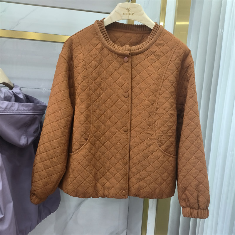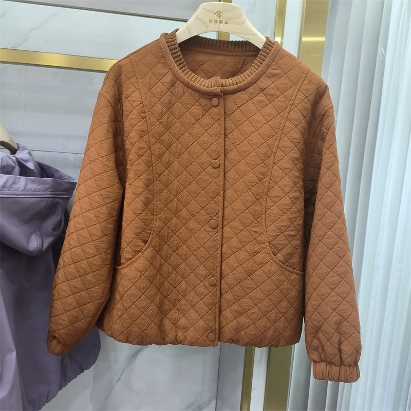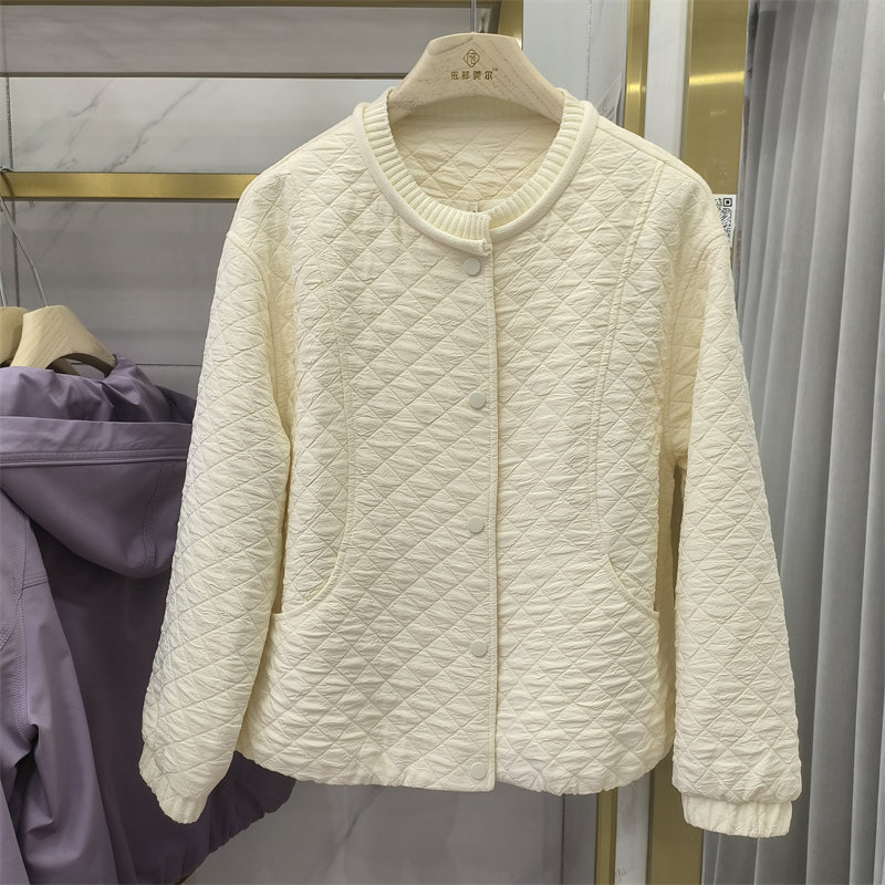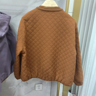 夹克显瘦百搭休闲上衣棒球服商场同款 时尚 圆领菱格纹短外套女春季