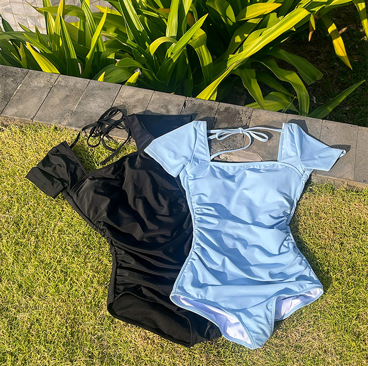 2026新款 保守显瘦设计感性感女士泳装 泡温泉 方领连体泳衣女款 短袖