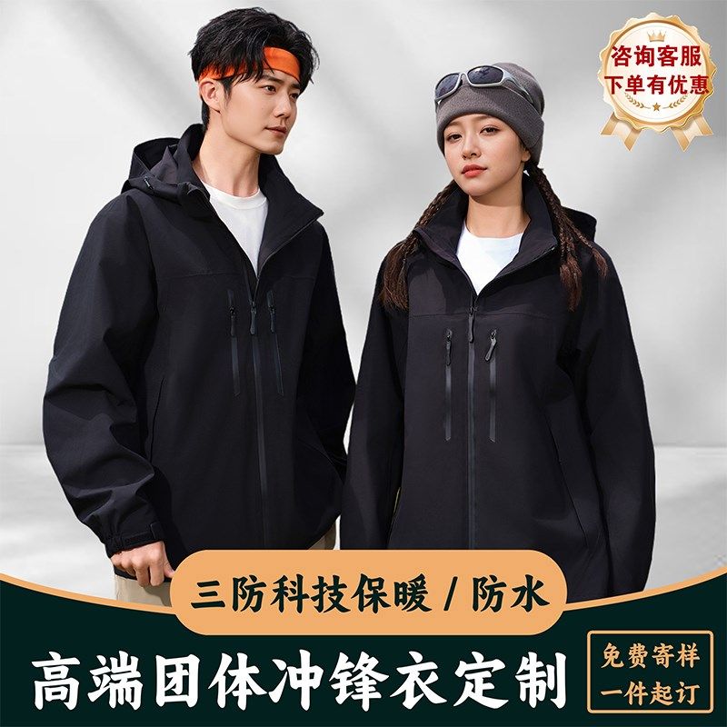 冲锋衣定a制印logo秋冬防风防水工作服外套工装 三合一拆卸刺绣定