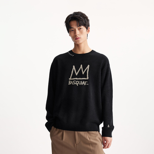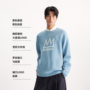 上衣 针织衫 杰克琼斯BSQ联名男装 毛衣撞色logo宽松休闲圆领长袖