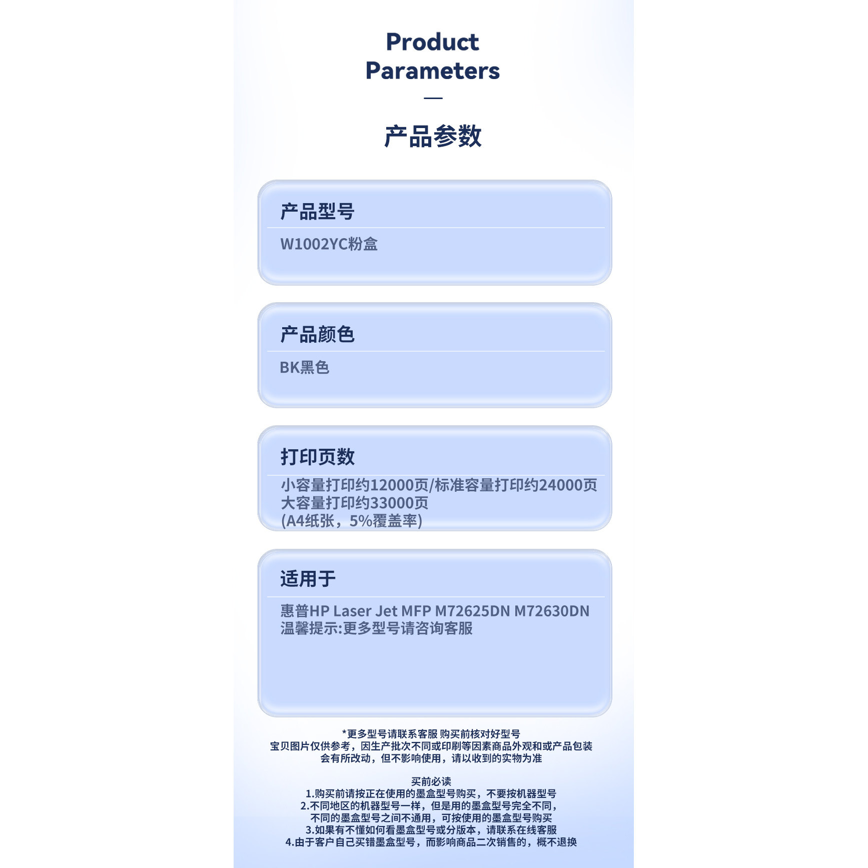 复合打印机墨盒 雄彩适用于HP惠普W1002YC碳粉 M72630dn M72625dn粉盒MFP 墨粉盒墨粉仓W1002YC硒鼓粉盒 MFP