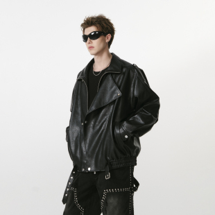 FORNINES复古翻领皮衣外套男款 情侣春秋PU夹克女痞帅高级感机车服