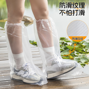 一次性加厚高筒防水防滑耐磨成人雨鞋 套下雨天蓝色透明脚套长筒