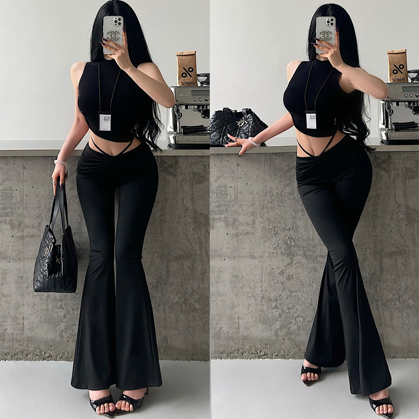 YoungGirlDay纯欲风低腰系带蝴蝶结微喇显腿长休闲瑜伽裤 拖地长裤