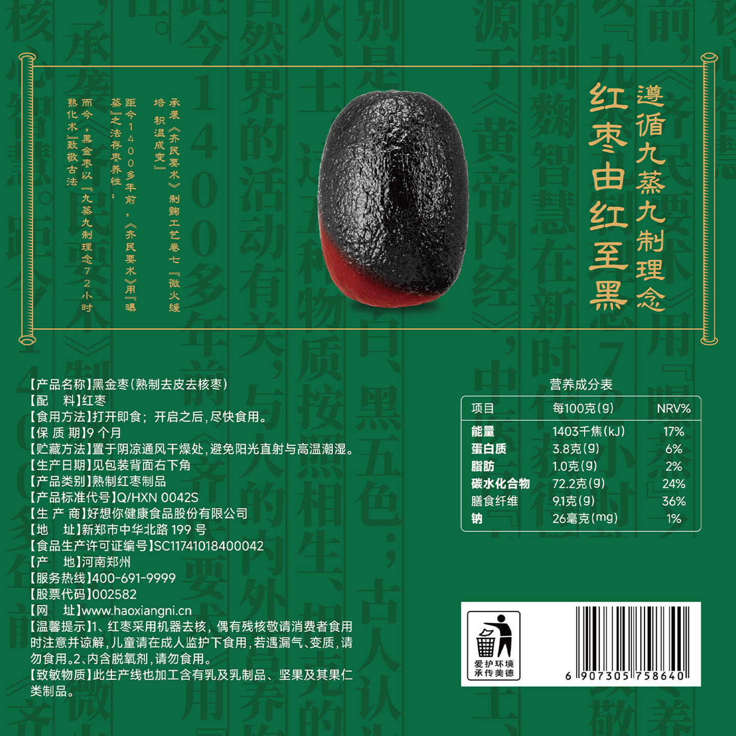 好想你黑金枣780g熟制去皮去核枣古方加工蜜饯酸甜果脯零食低升糖