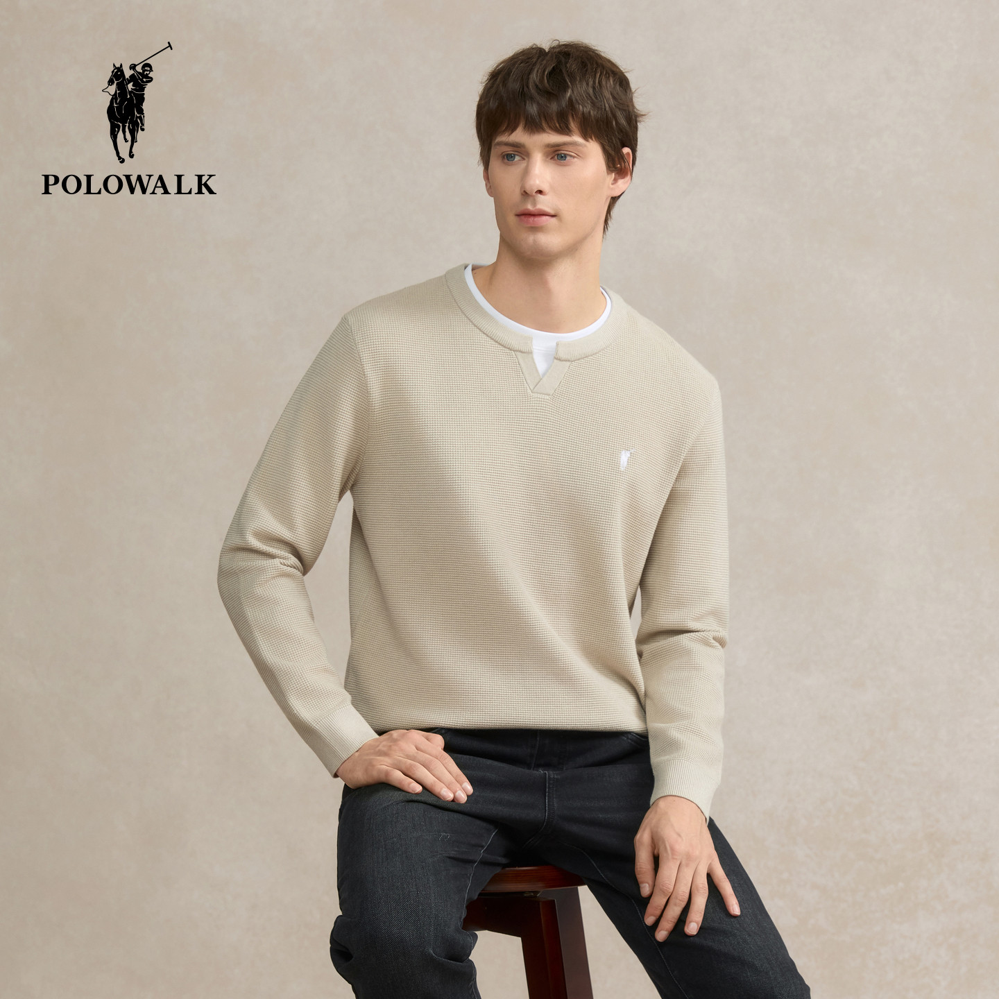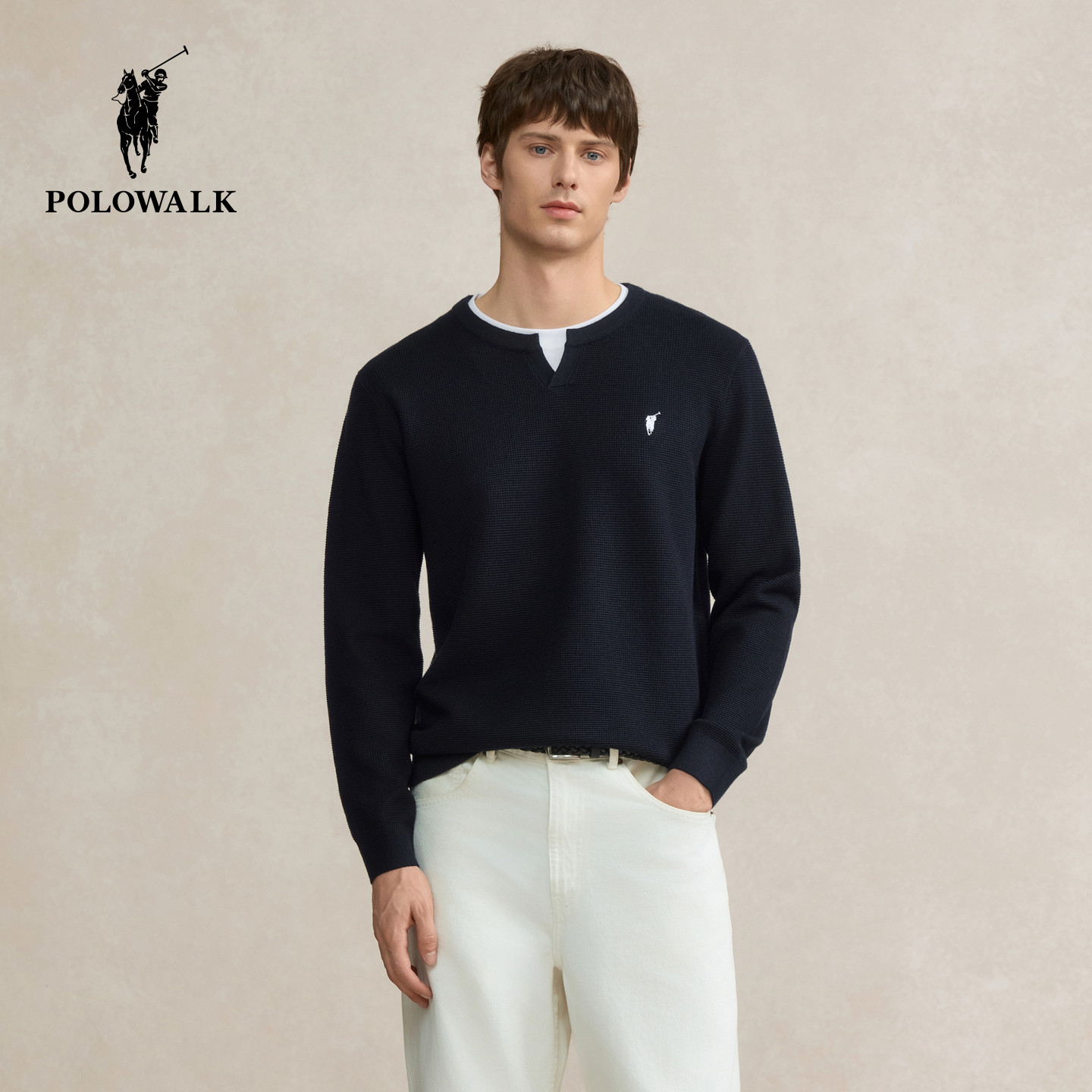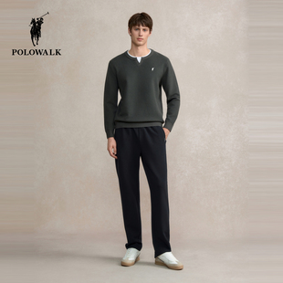 针织衫 纯色简约圆领上衣男款 2025秋季 撞色打底衫 新品 POLOWALK男式