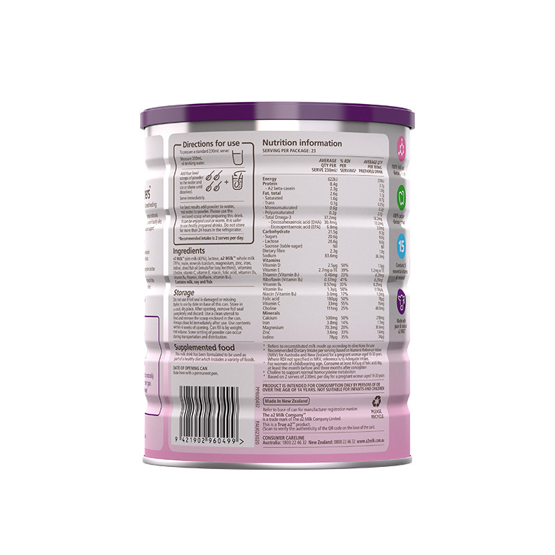 新西兰a2孕妇奶粉妈妈A2蛋白质产妇孕早中晚期哺乳期牛奶粉900g