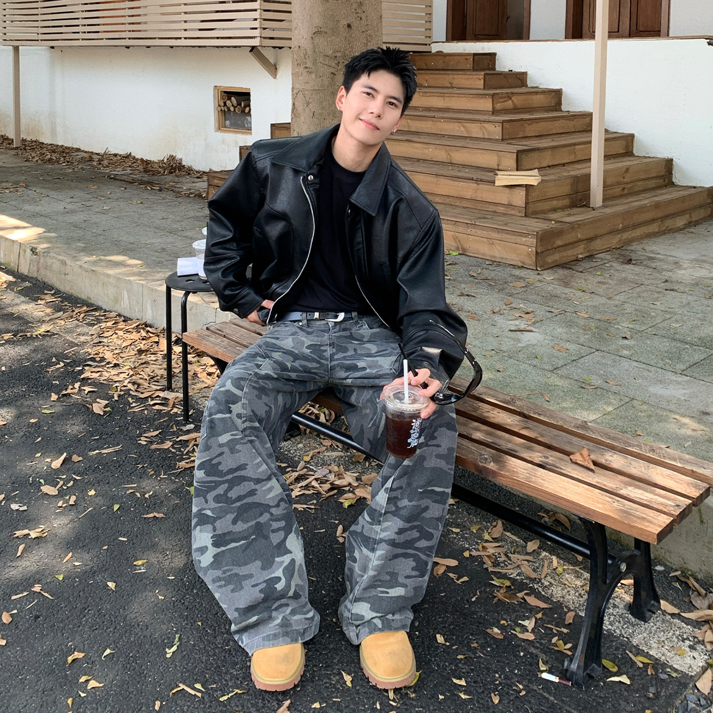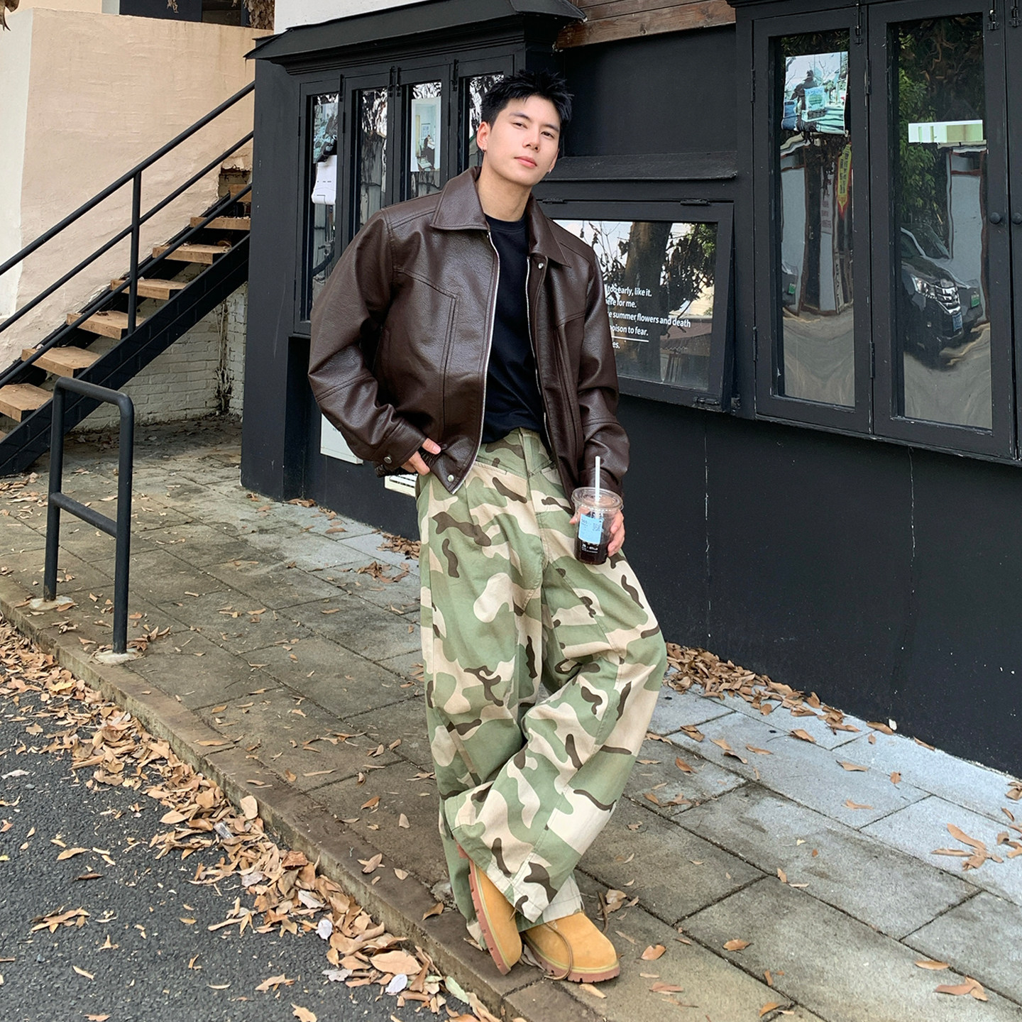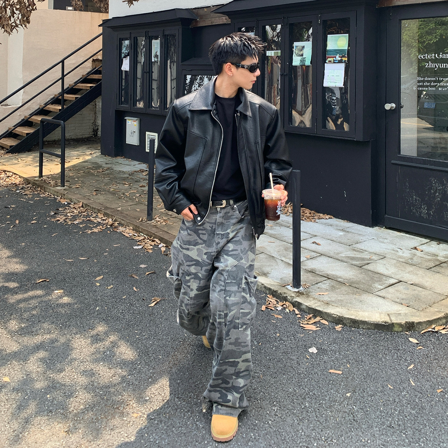Holocene美式 皮衣外套男美拉德初秋痞帅炸街复古夹克 潮牌棕色短款