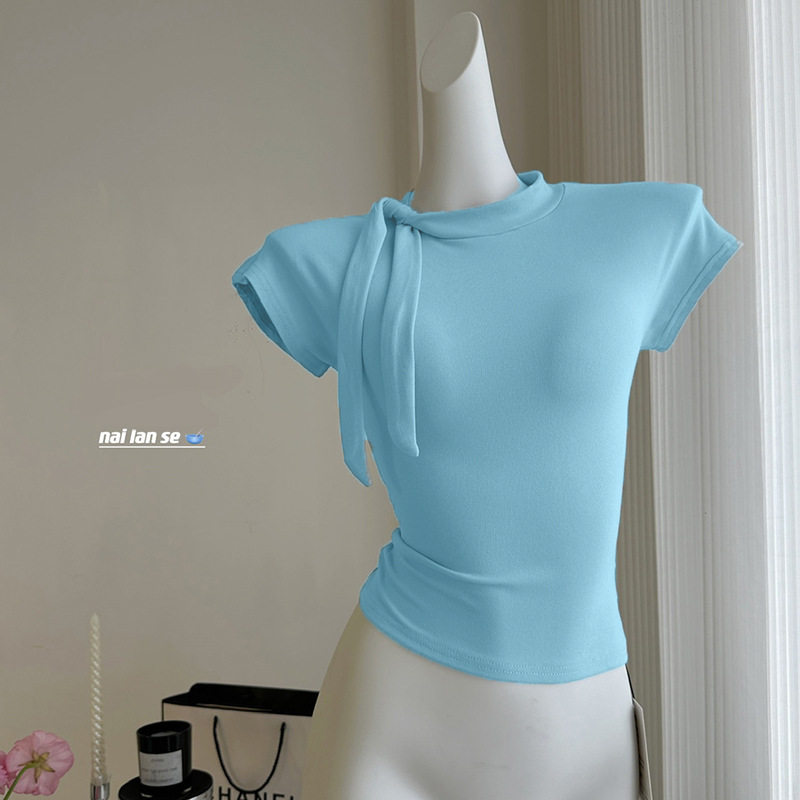 气质内搭小个子上衣 洋气纯色2025修身 绑带紧身短袖 T恤女辣妹个性