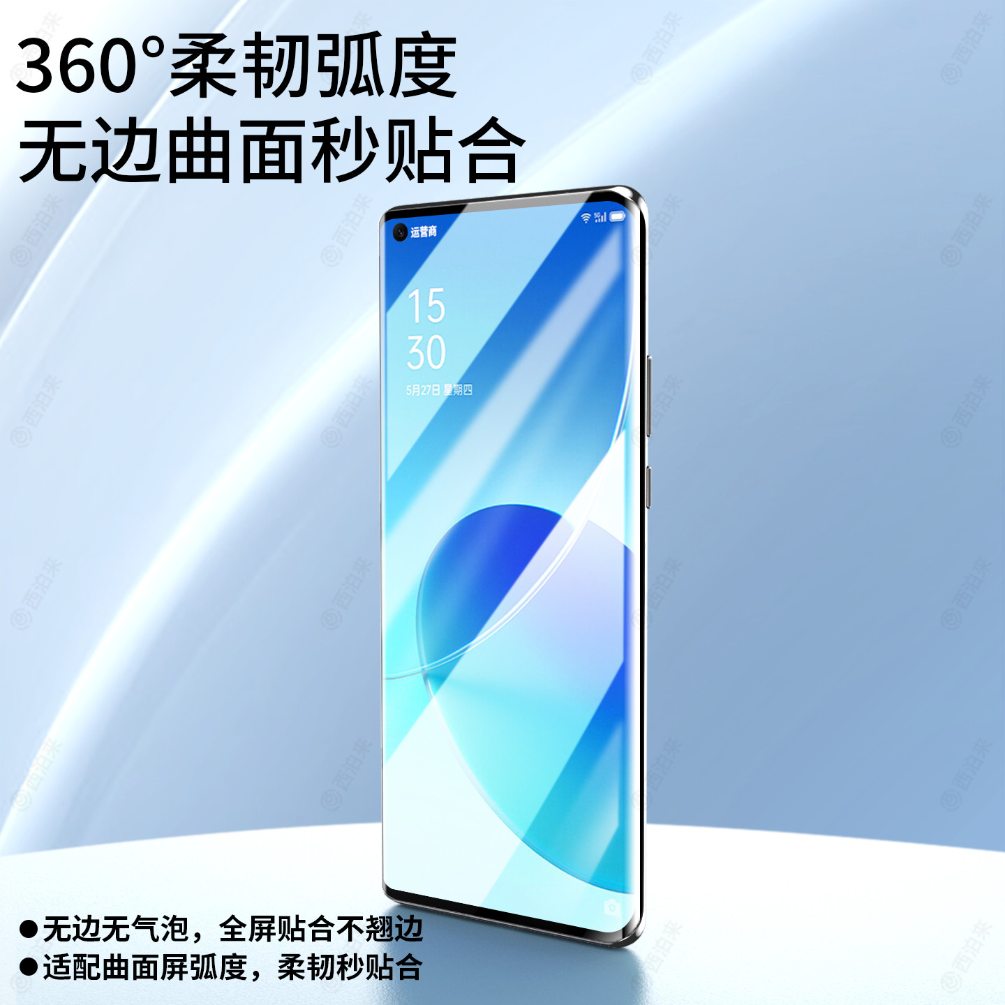 西泊来适用opporeno6pro手机膜reno6水凝膜reon6pro 全屏覆盖曲屏适用oppo十曲面贴膜opopreno 钢化膜全胶新款