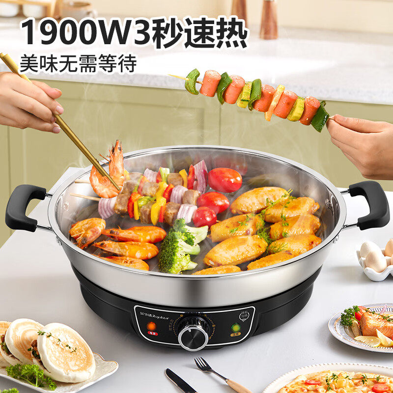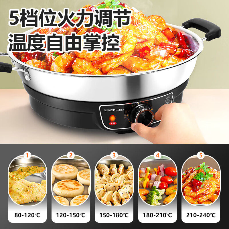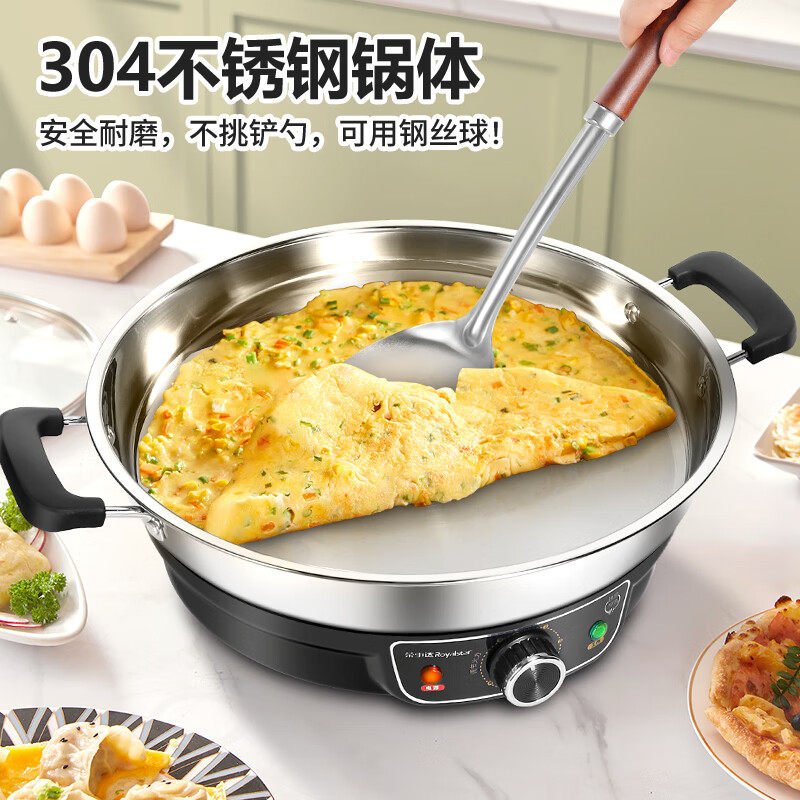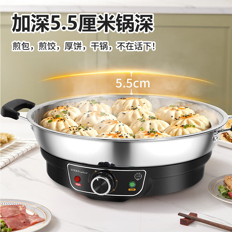 荣事达电饼铛新款 家用不锈钢加大加深煎饼烙饼一体机多功能电煎锅
