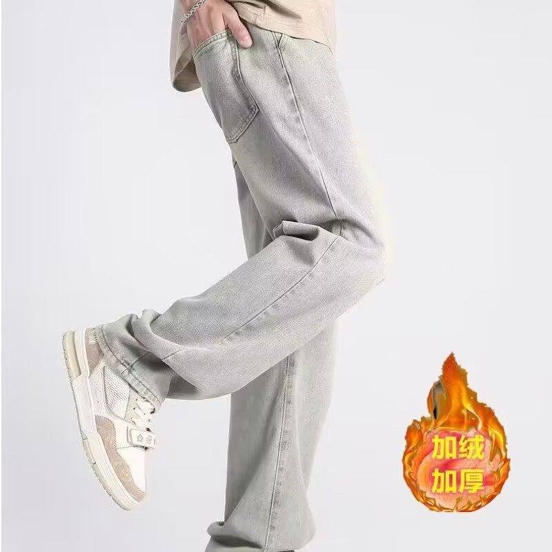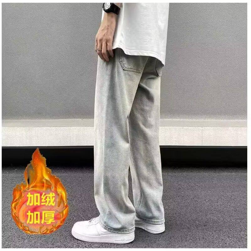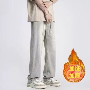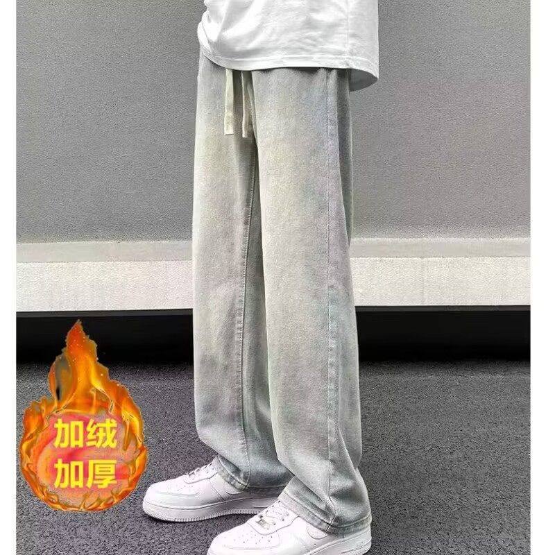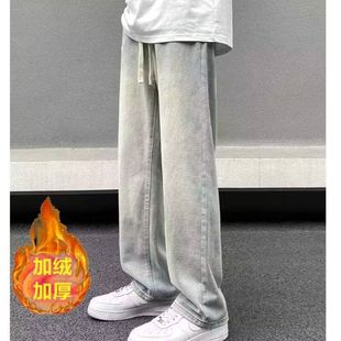 宽松直筒加绒休闲阔腿裤 NG真维斯复古牛仔裤 美式 秋冬2025新款 男士