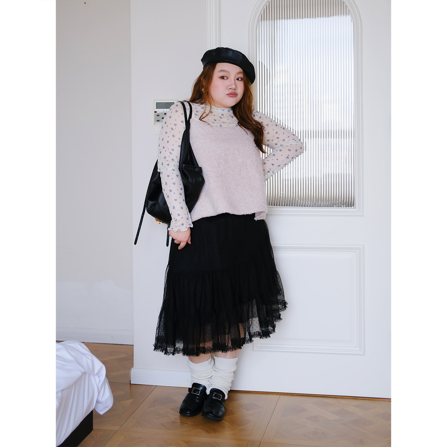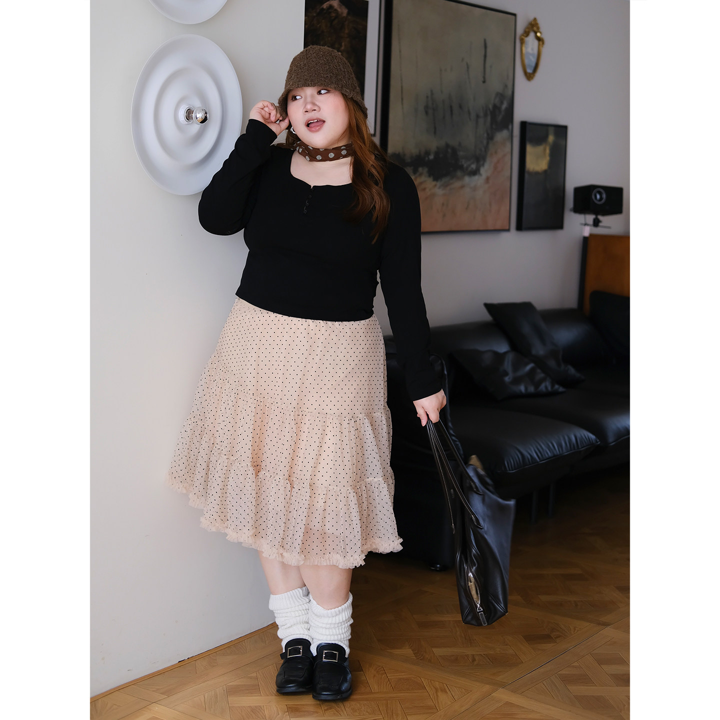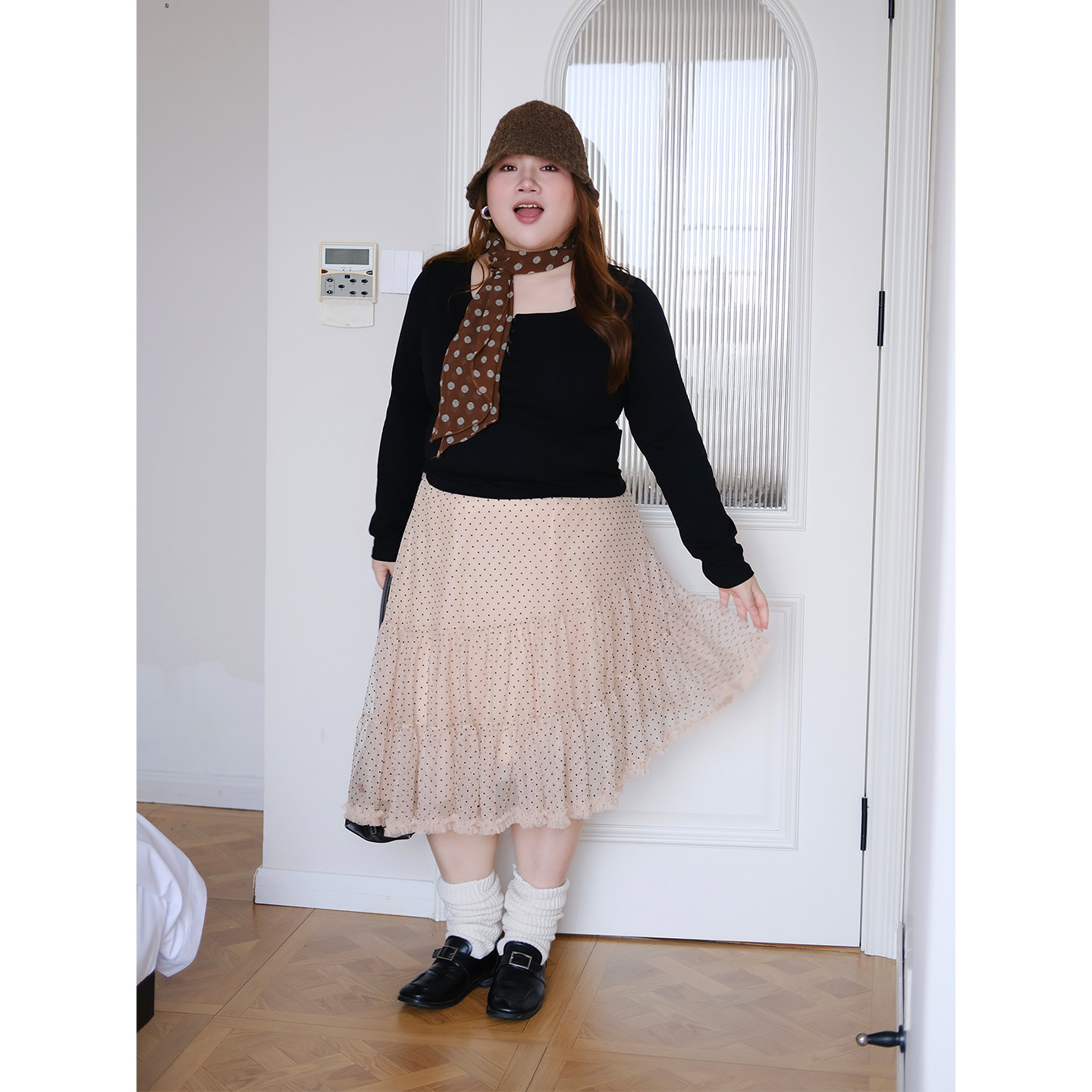 zooobaby01 04韩系简约圆领波点甜美波点半身裙木耳裙纱裙子