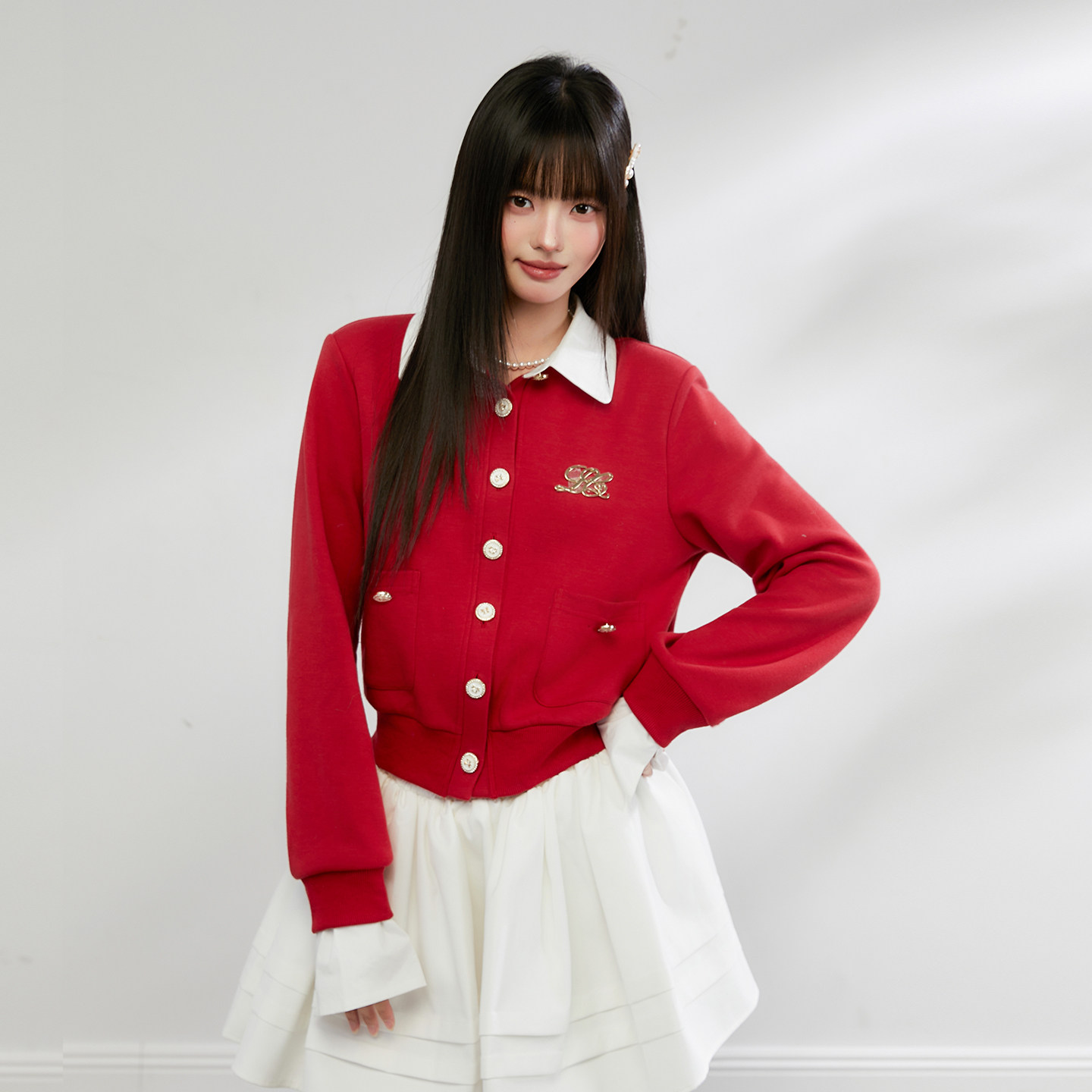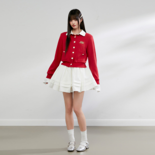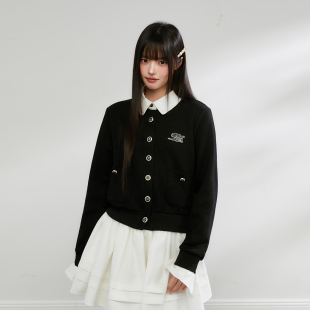 卫衣女长袖 King 翻领撞色拼接假两件针织开衫 新款 上衣 Prince春季