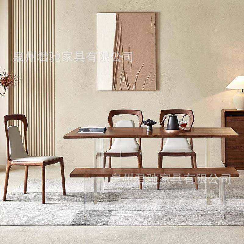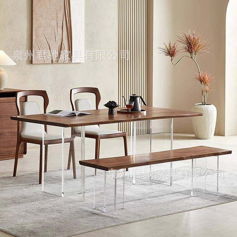 北美黑胡桃木餐桌亚克力悬浮书桌茶桌樱桃木松木实木家用办公简约